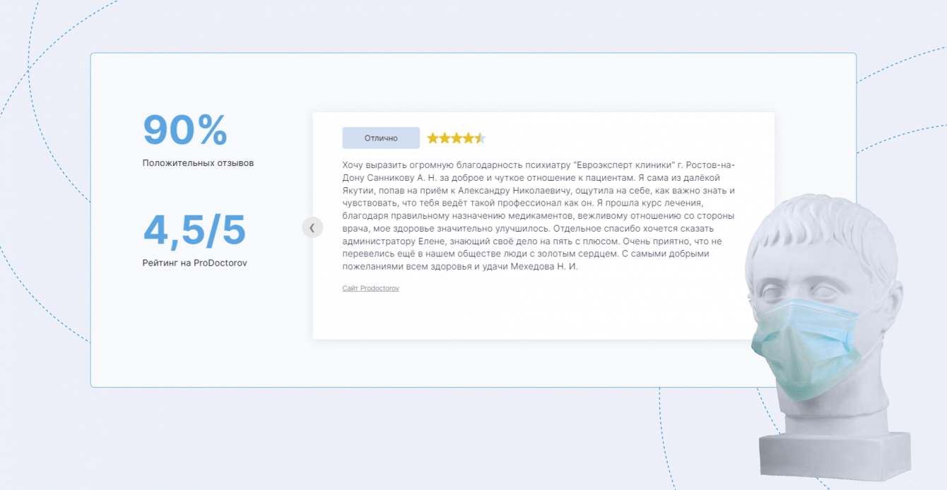 Поэтому на сайте медцентра настроили автоматический вывод положительных отзывов с ПроДокторов.