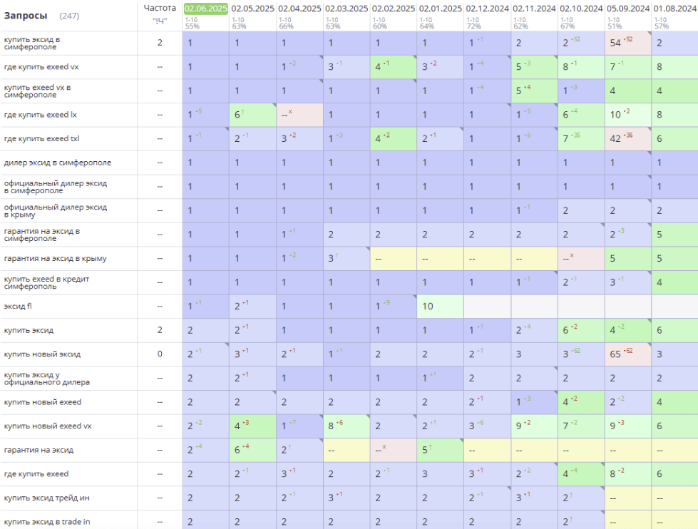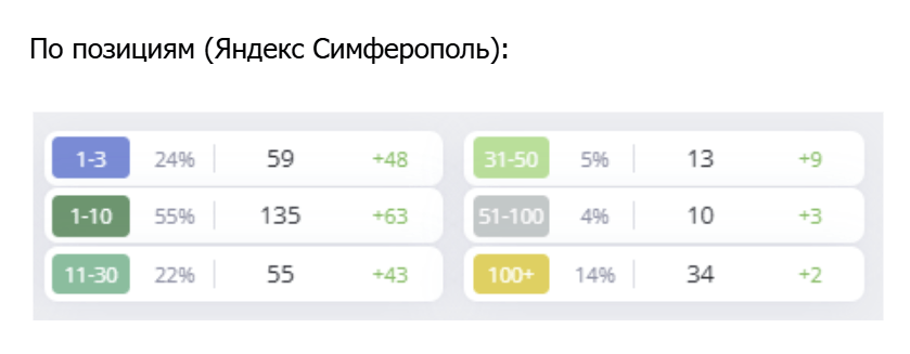 ● Значительное улучшение позиций в Яндекс Симферополь, что указывает на рост локальной видимости бренда в регионе.