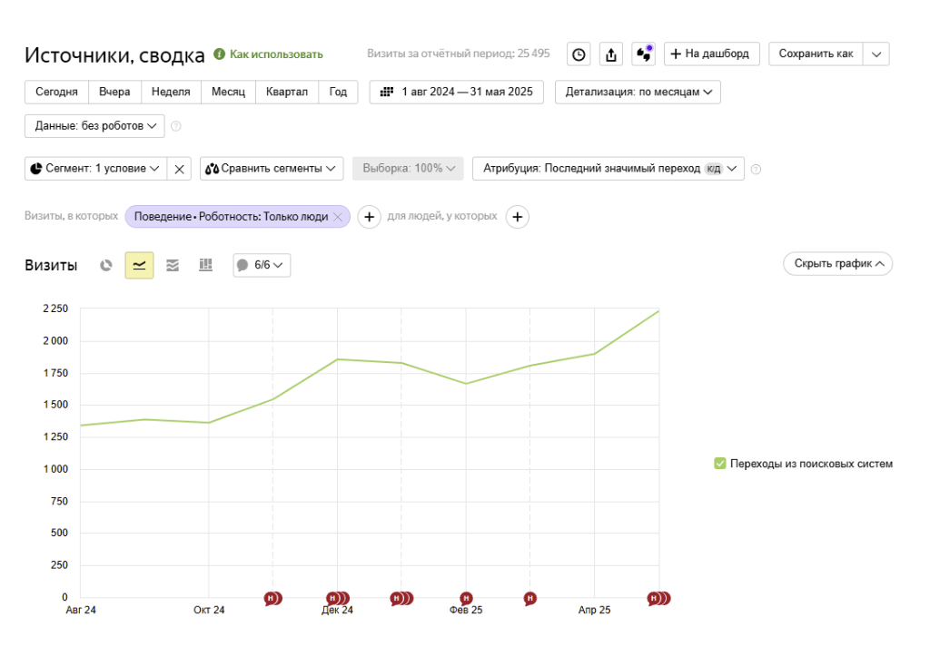 ● Увеличение количества визитов на 67% с августа 2024 по май 2025.