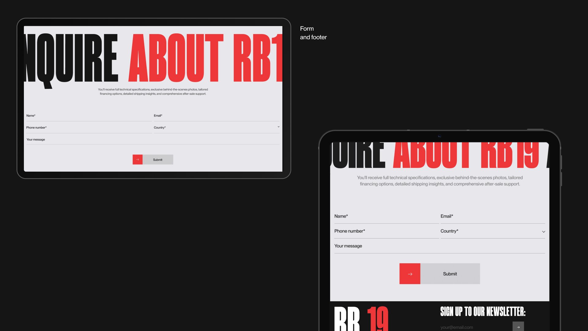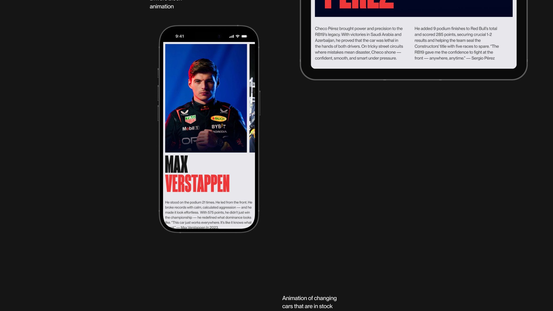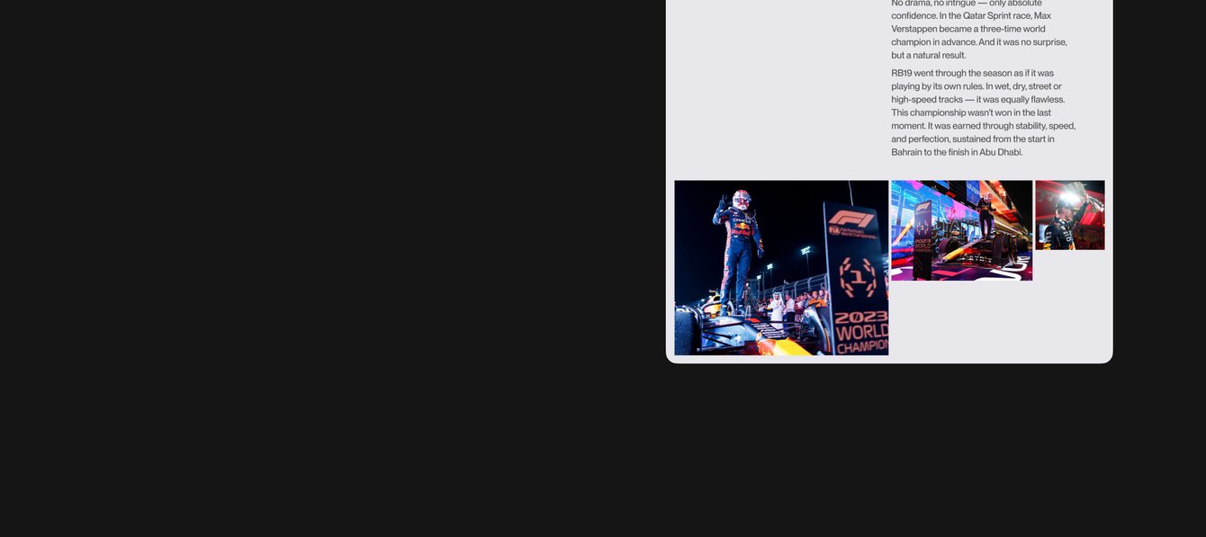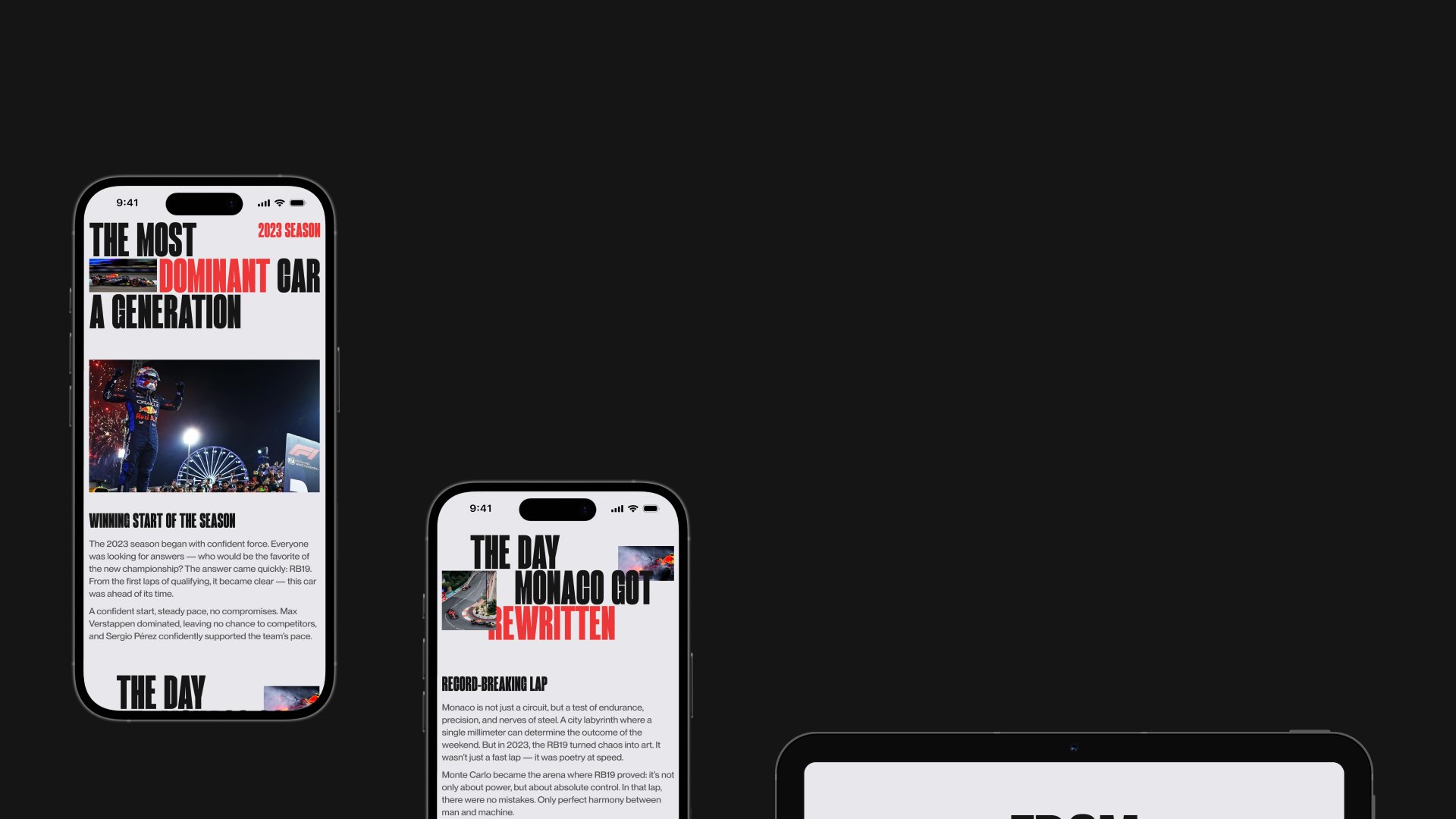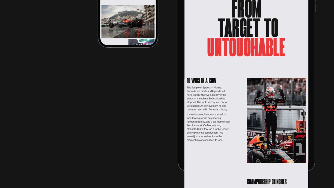 Концепт лендинга, посвященному легендарному болиду формулы 1 RB19. Основная задача в реализации проекта — создать ощущение скорости в каждом блоке, погрузить пользователя в историю и разработать интуитивно понятный интерфейс.