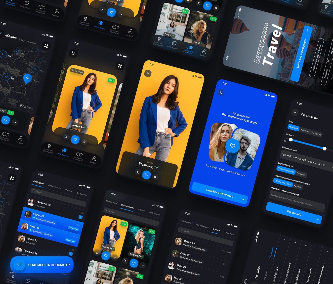 К нам обратился клиент с идеей стартап-проекта. Идея состояла в создании мобильного дэйтинг-приложения, с помощью которого люди смогут знакомиться и общаться для совместных путешествий. Клиенту нужно было конкурентоспособное приложение с подходящим дизайном и удобным интерфейсом, а также возможность монетизации.