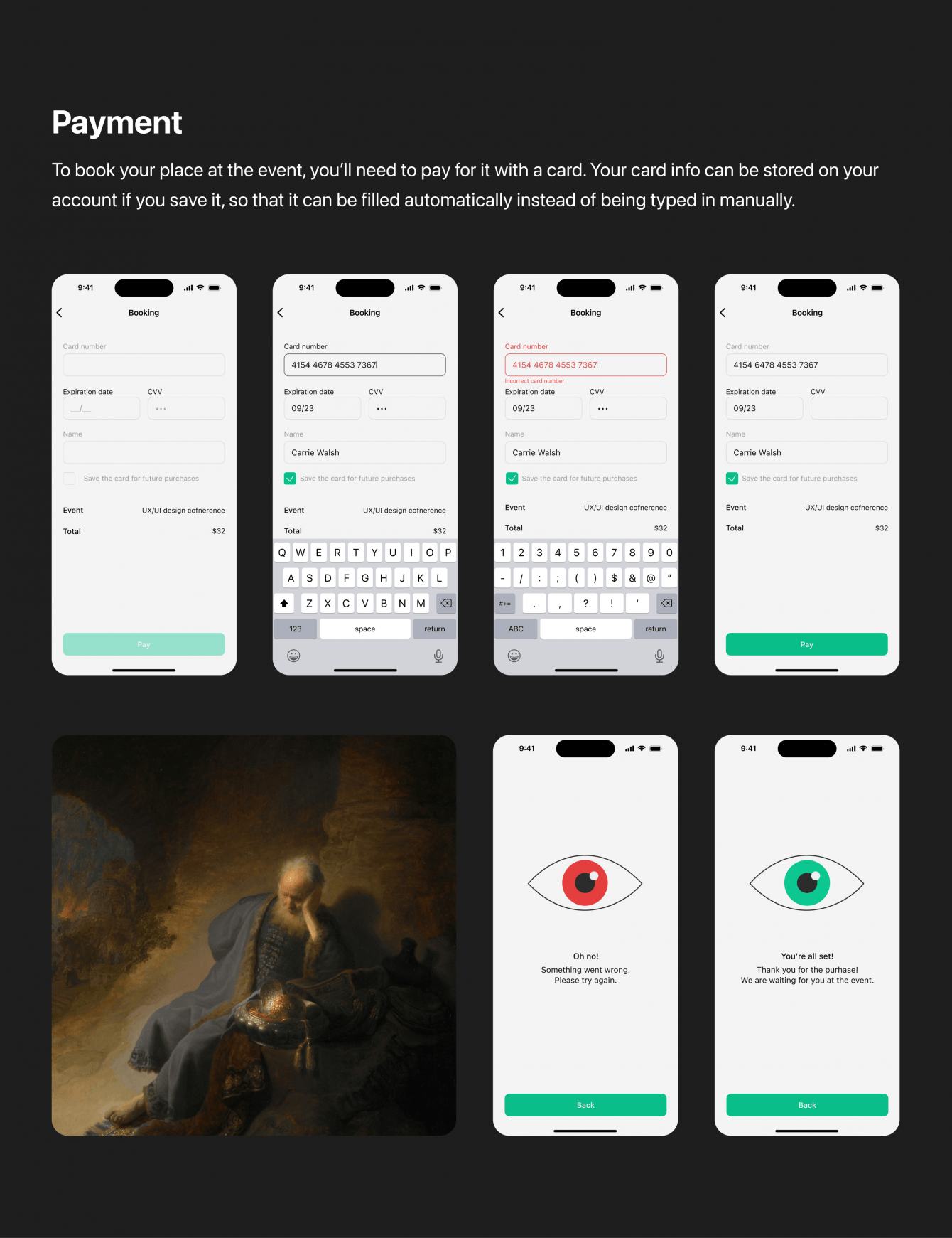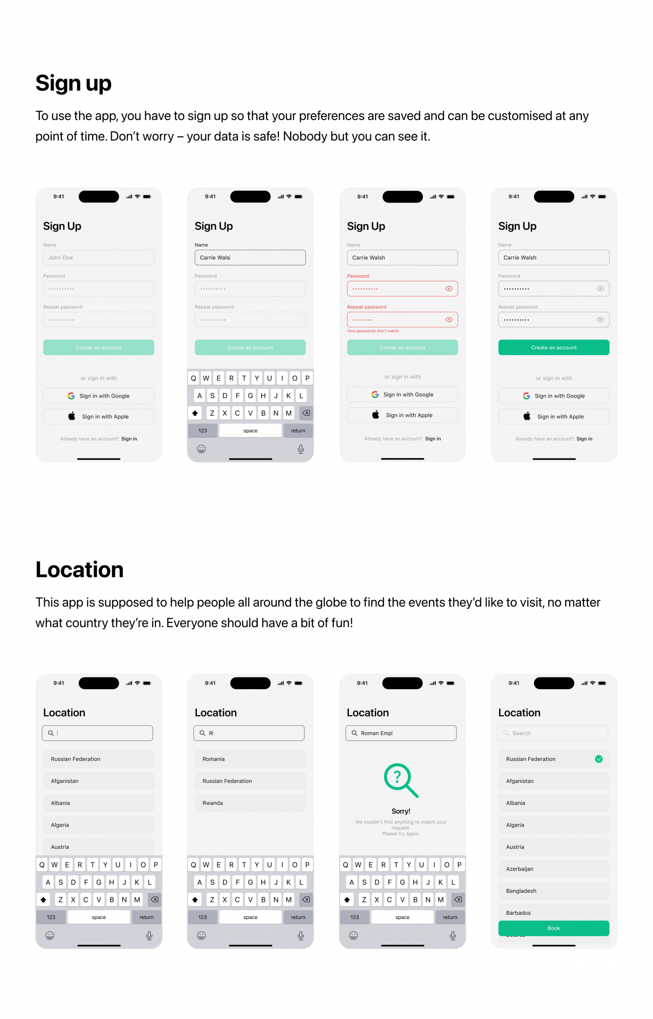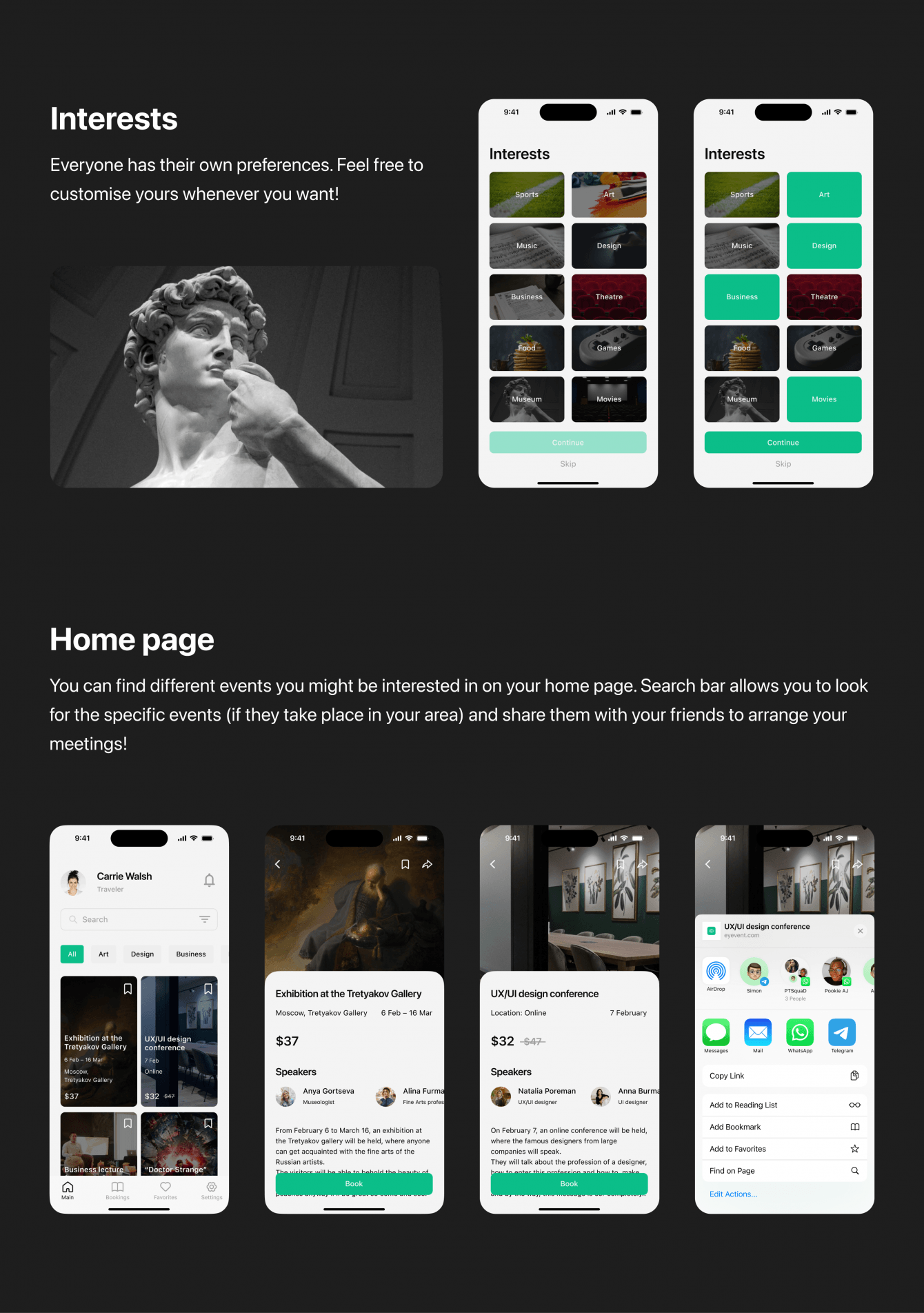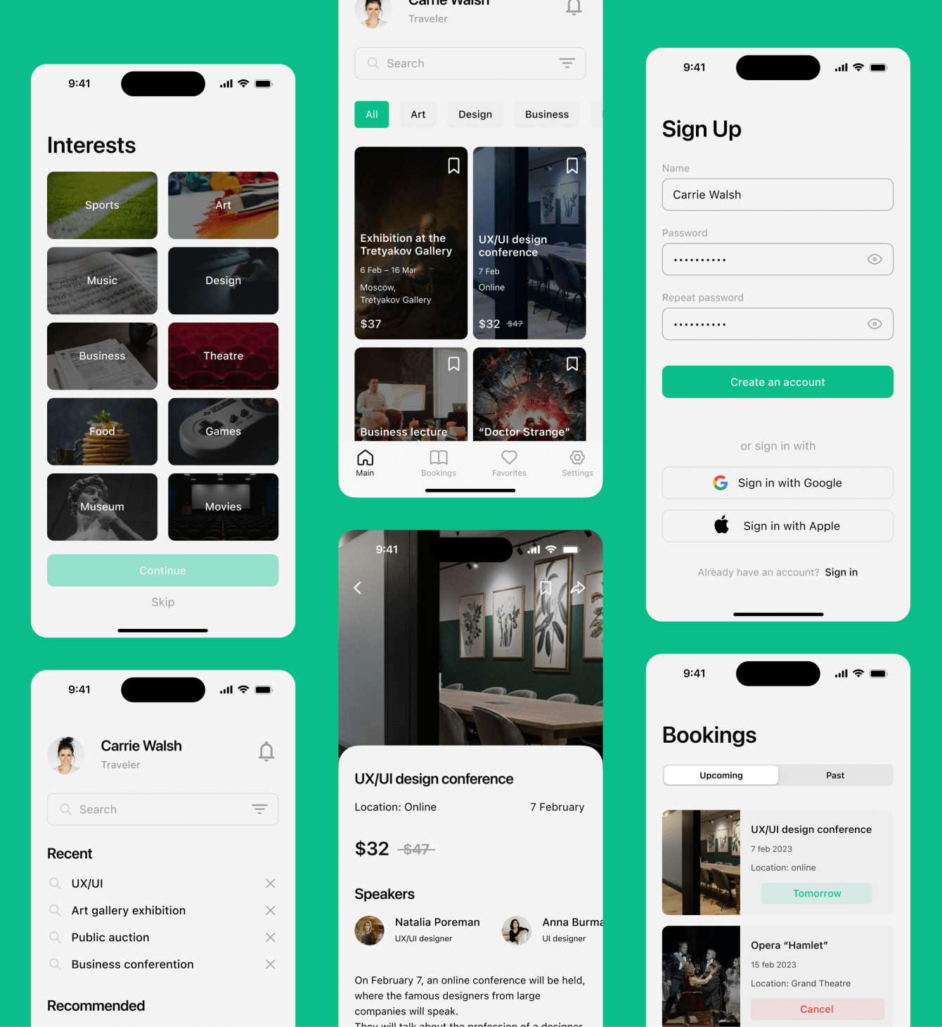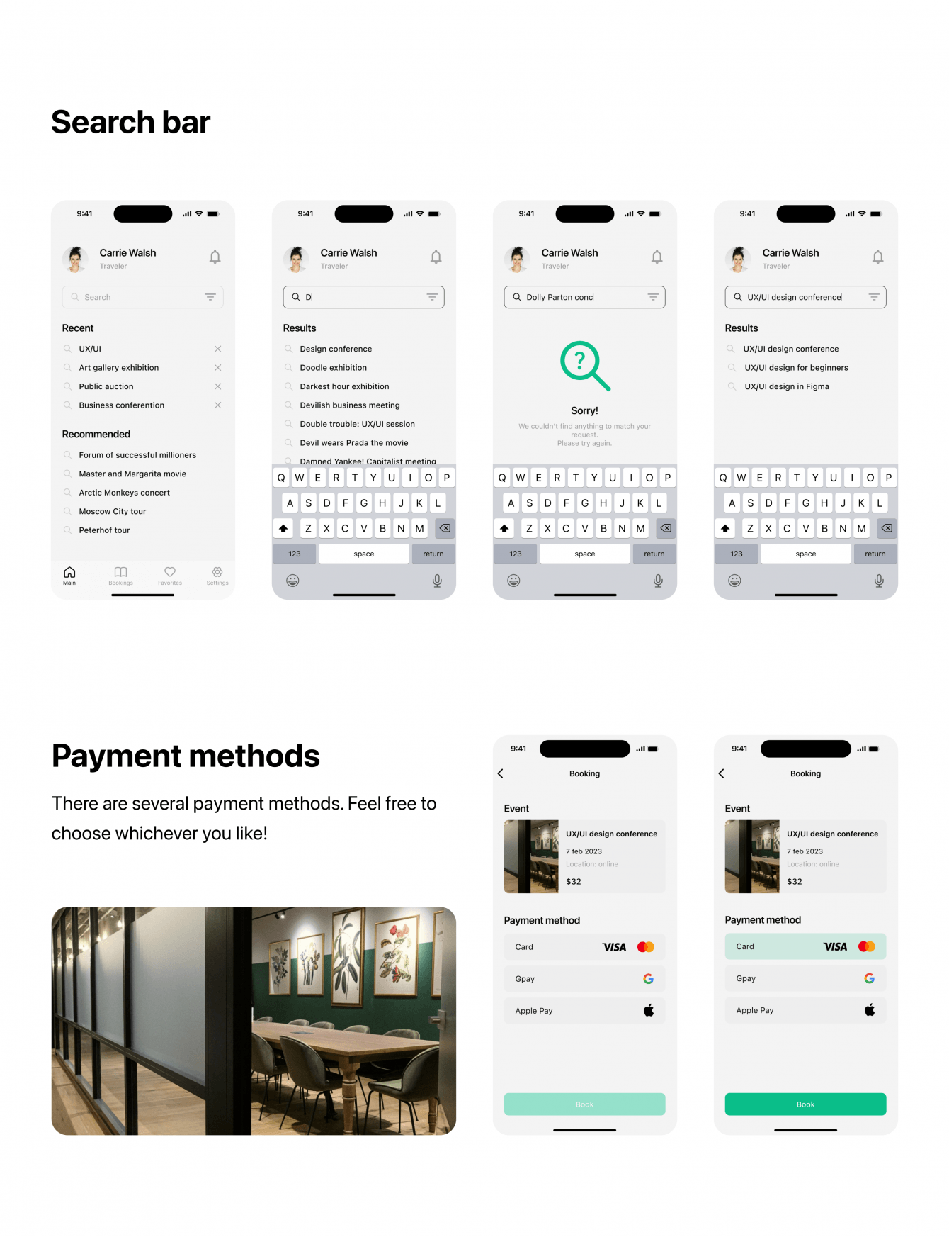 Клиент: дизайн приложения для поиска и бронирования мест на различных мероприятиях.