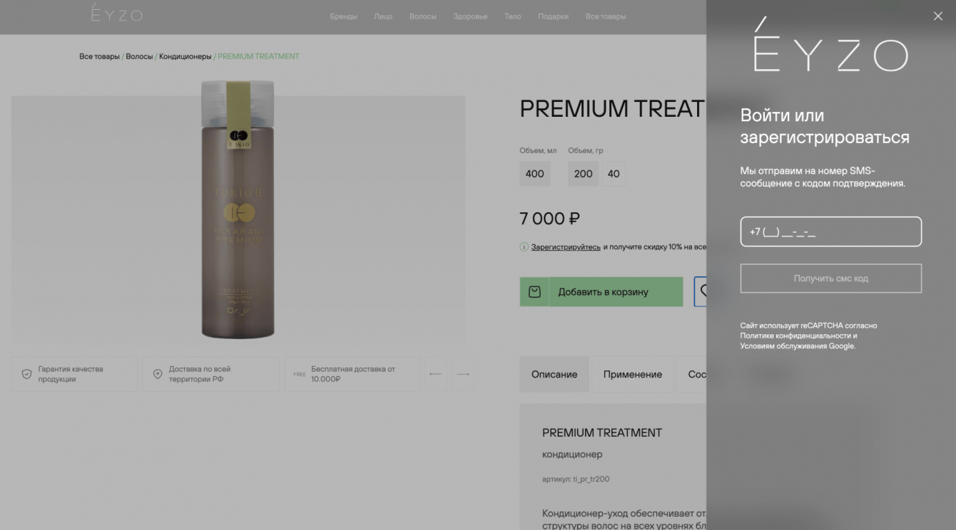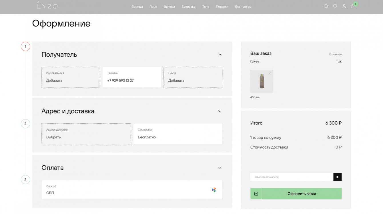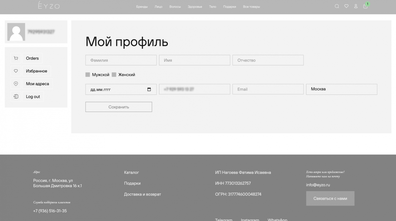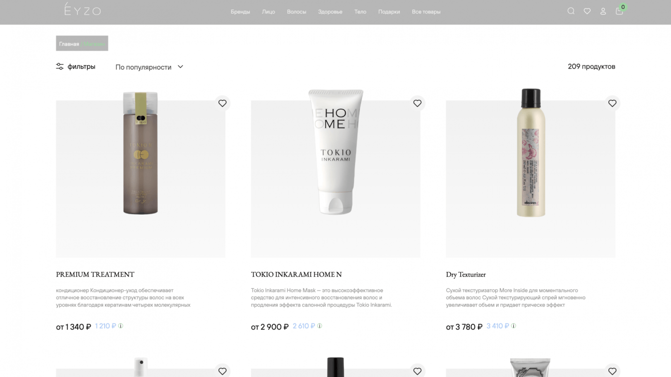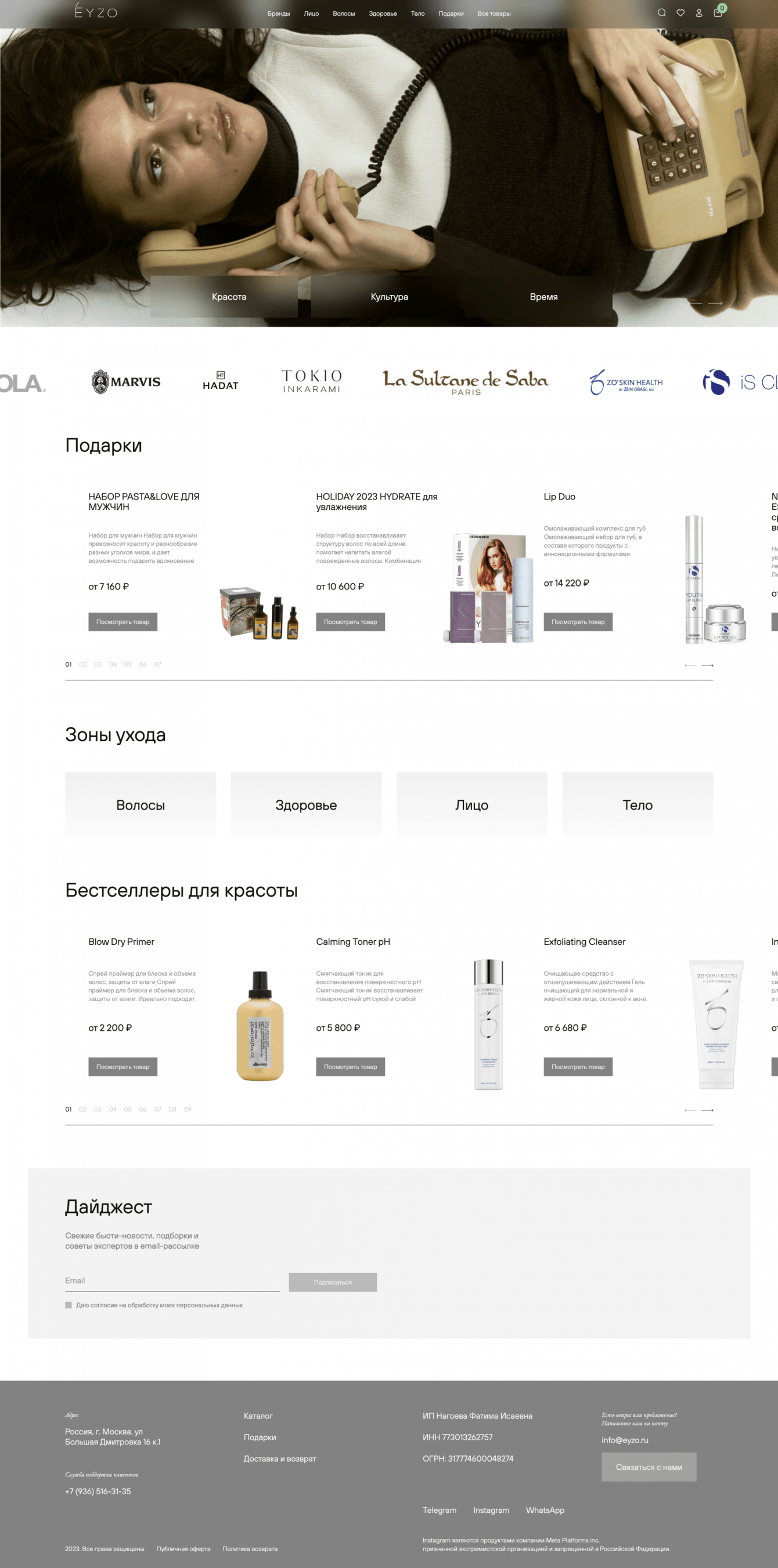 Сделать сайт для «Eyzo» — это Культура, Время, Красота. Онлайн-универмаг, где каждый продукт прошел отбор экспертов.