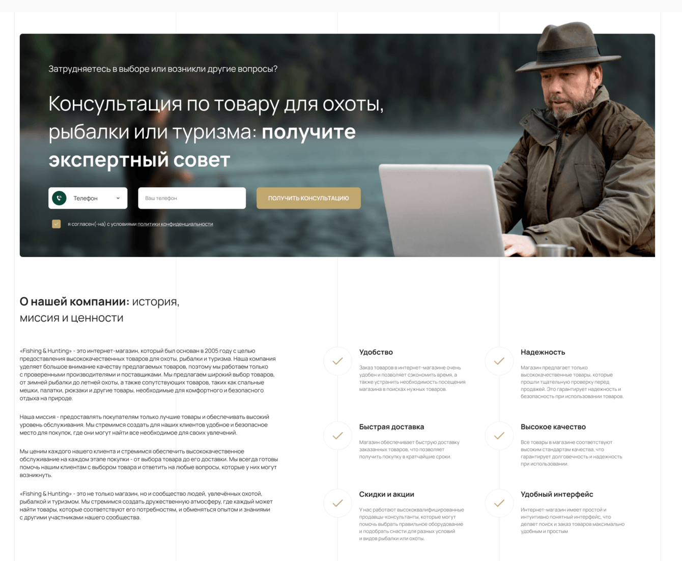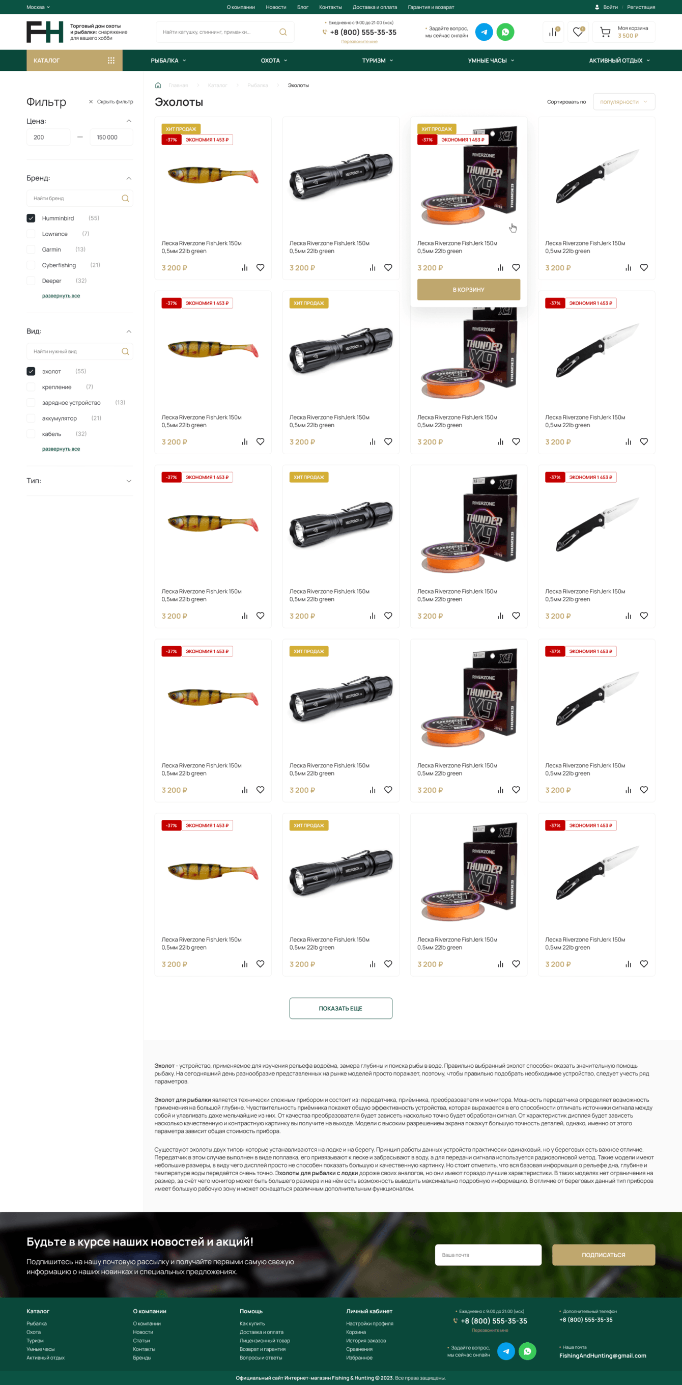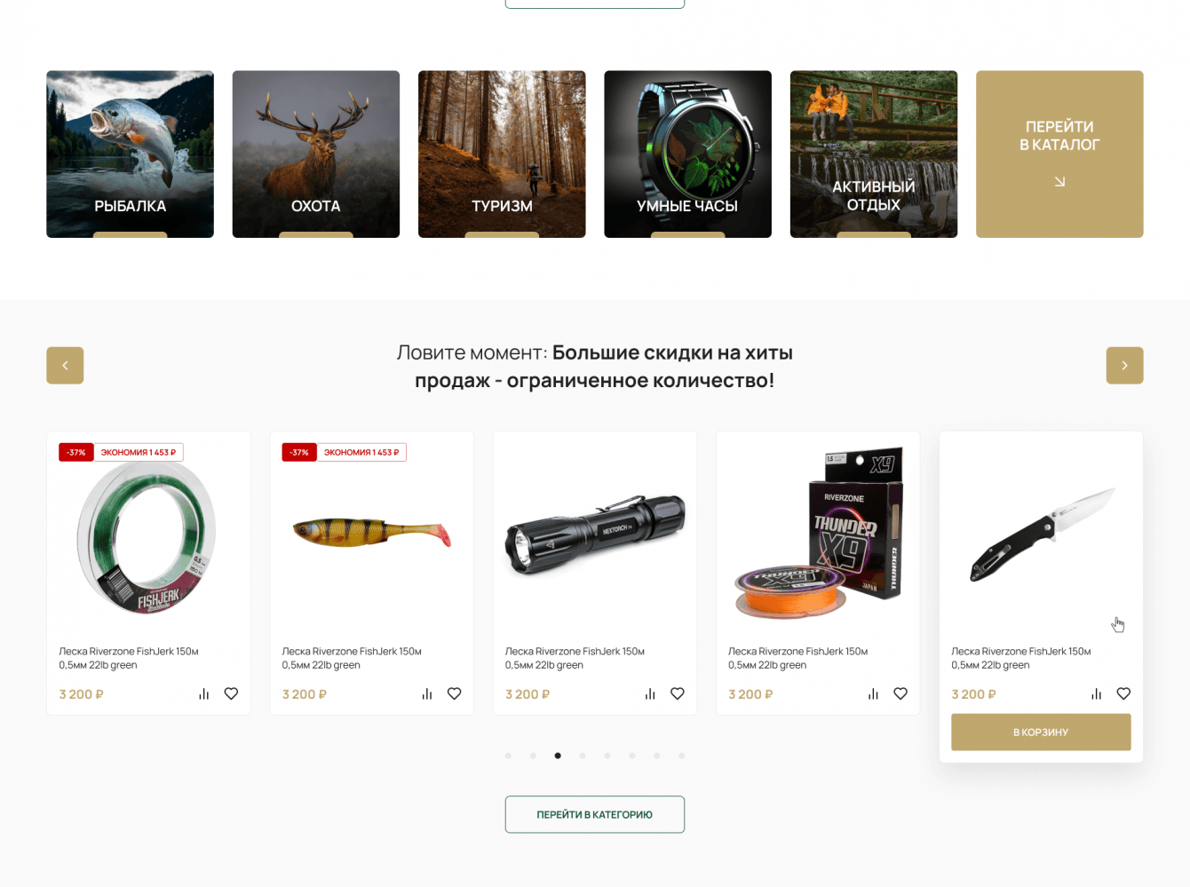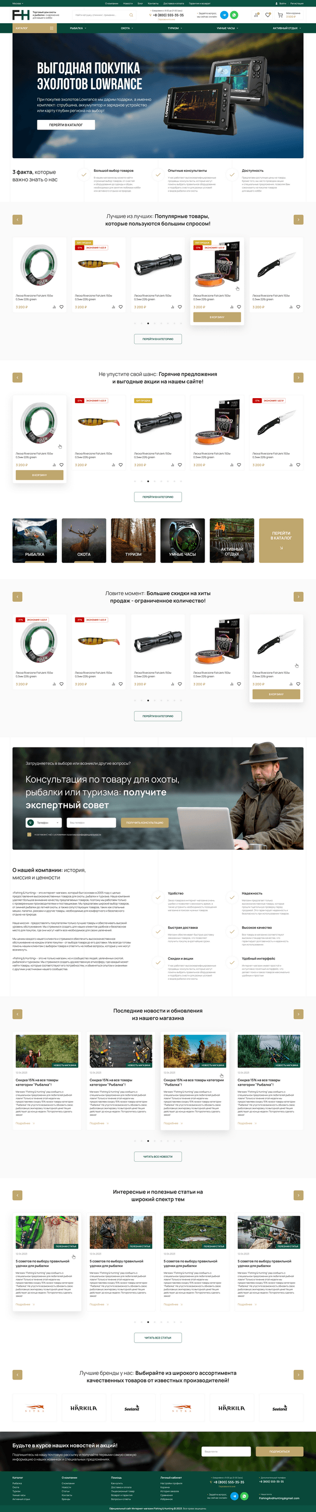 Разработка большого, удобного покупателю и привлекательного интернет магазина товаров для охоты и рыбалки.