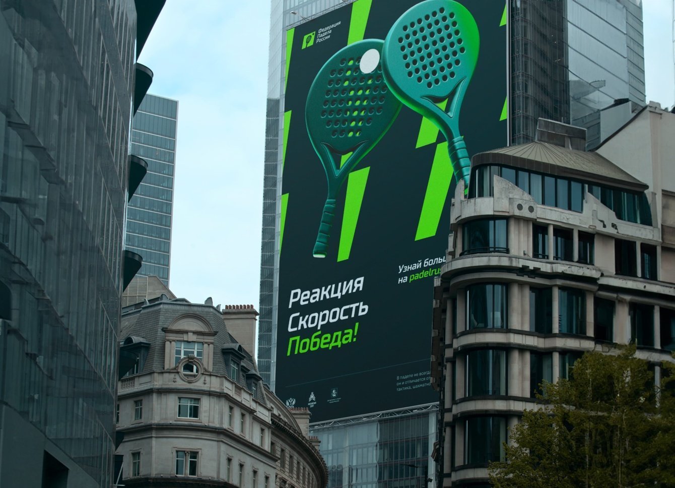 Фирменный фотосет с падел-спортсменом используется на разных носителях, что делает общий стиль более выразительным и целостным.