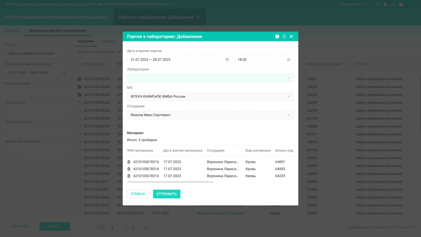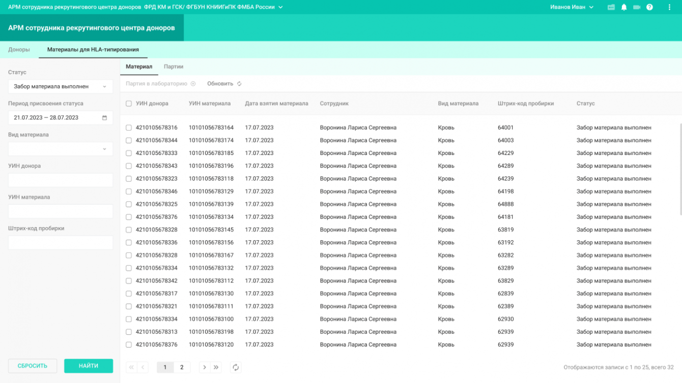 2. АРМ сотрудника типирующей лаборатории