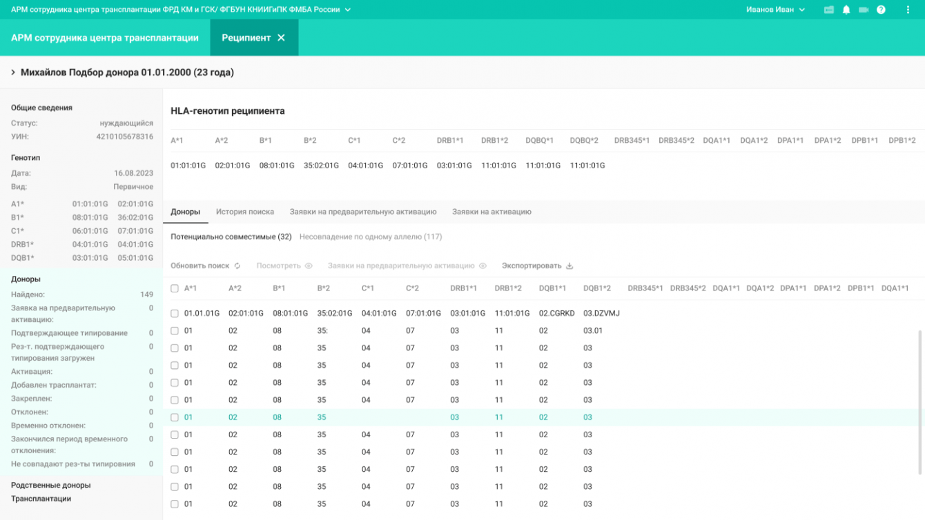 2. Оптимизировать процессы поиска неродственных доноров, совместимых по системе HLA с реципиентами, нуждающимися в трансплантации костного мозга или гемопоэтических стволовых клеток