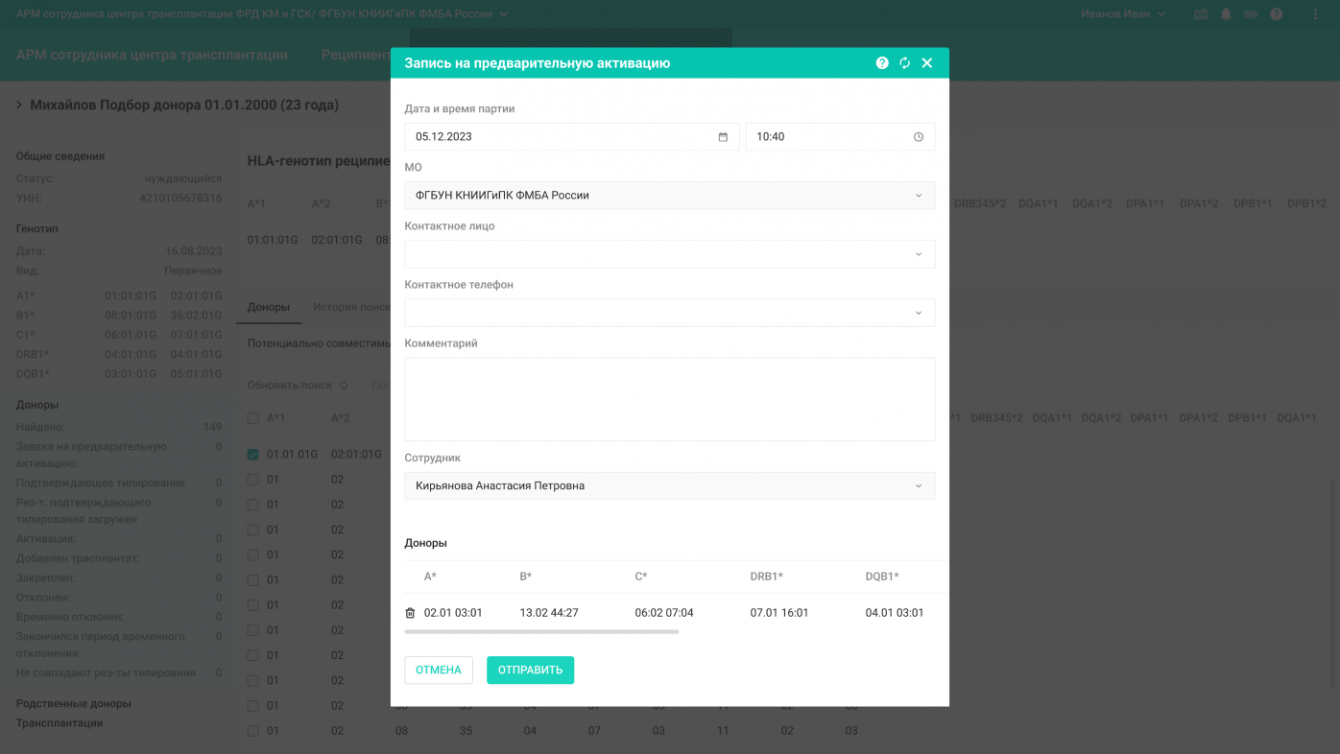 4. АРМ сотрудника центра трансплантации