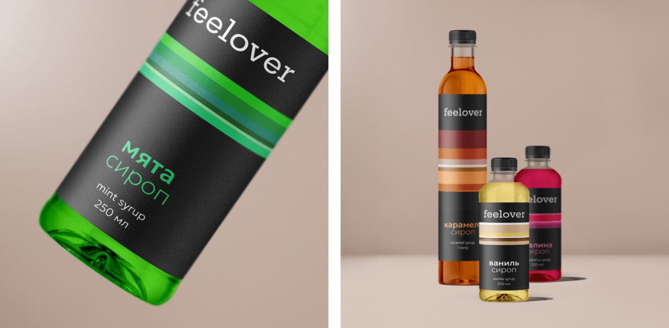 В дизайне Feelover мы снова обращаемся к горизонтальным линиям, но теперь они всегда разные. Эти линии описывают вкусы продуктов и создают ритмичный и выразительный рисунок.