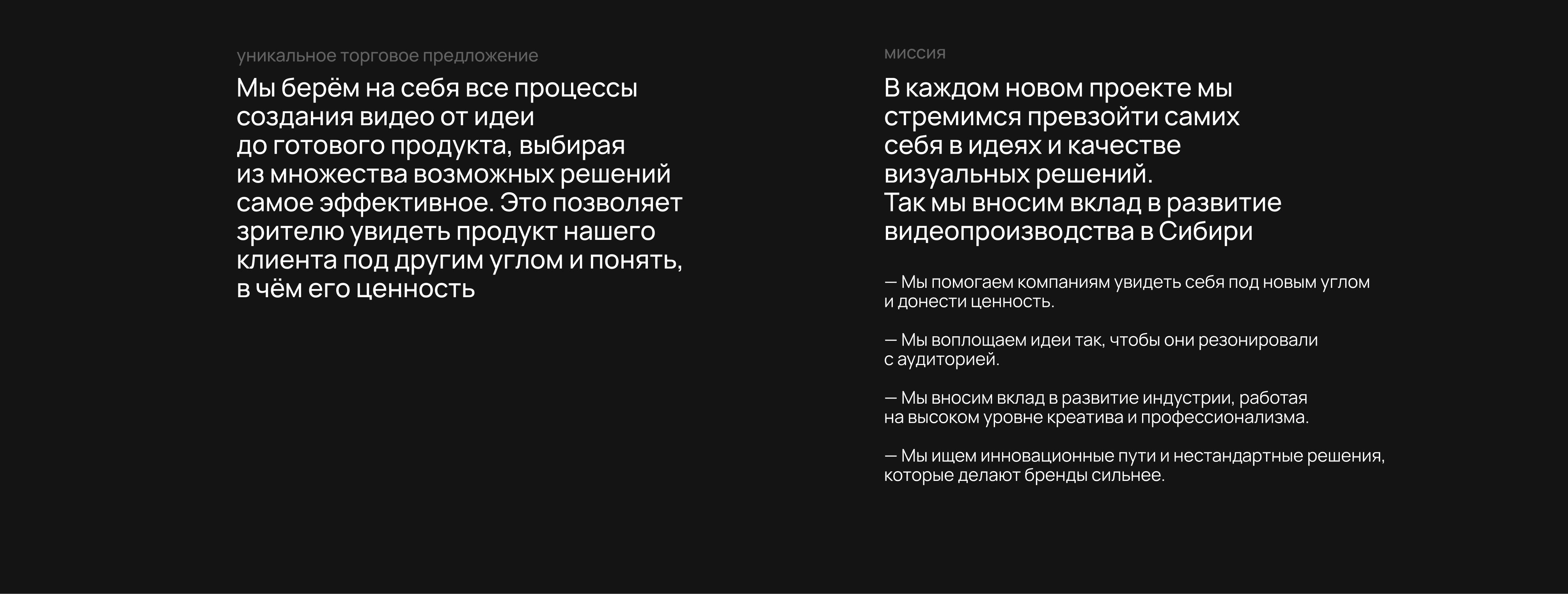 Мы сформулировали смысловые сообщения, которые необходимо транслировать с помощью визуала: