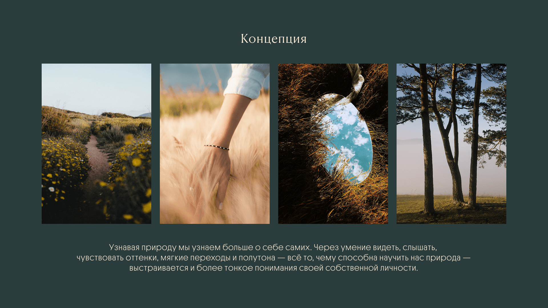 Последователи бренда и философии разделяют образ жизни, который сочетает городской комфорт и баланс с окружающей средой. Новый бренд верит, что природа может стать нашим учителем, помогая нам лучше понимать себя и мир вокруг.