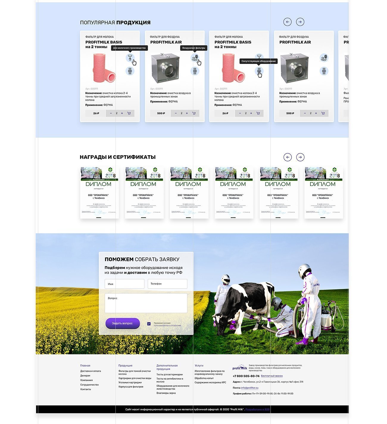 Клиент: Завод производства фильтров для молочных продуктов, воды, соков, пива, газа и оборудования для молочного производства "ProfitMilk"