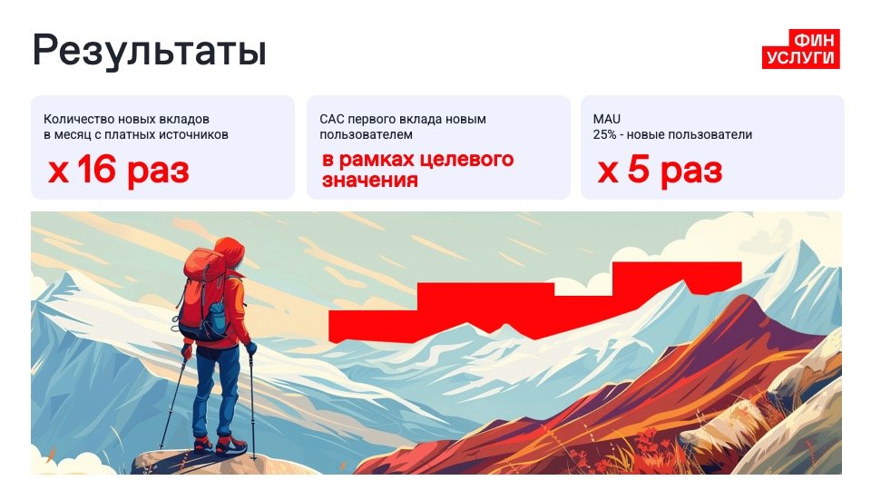 - Снижение стоимости привлечения клиента (CAC) при росте объема вкладов.