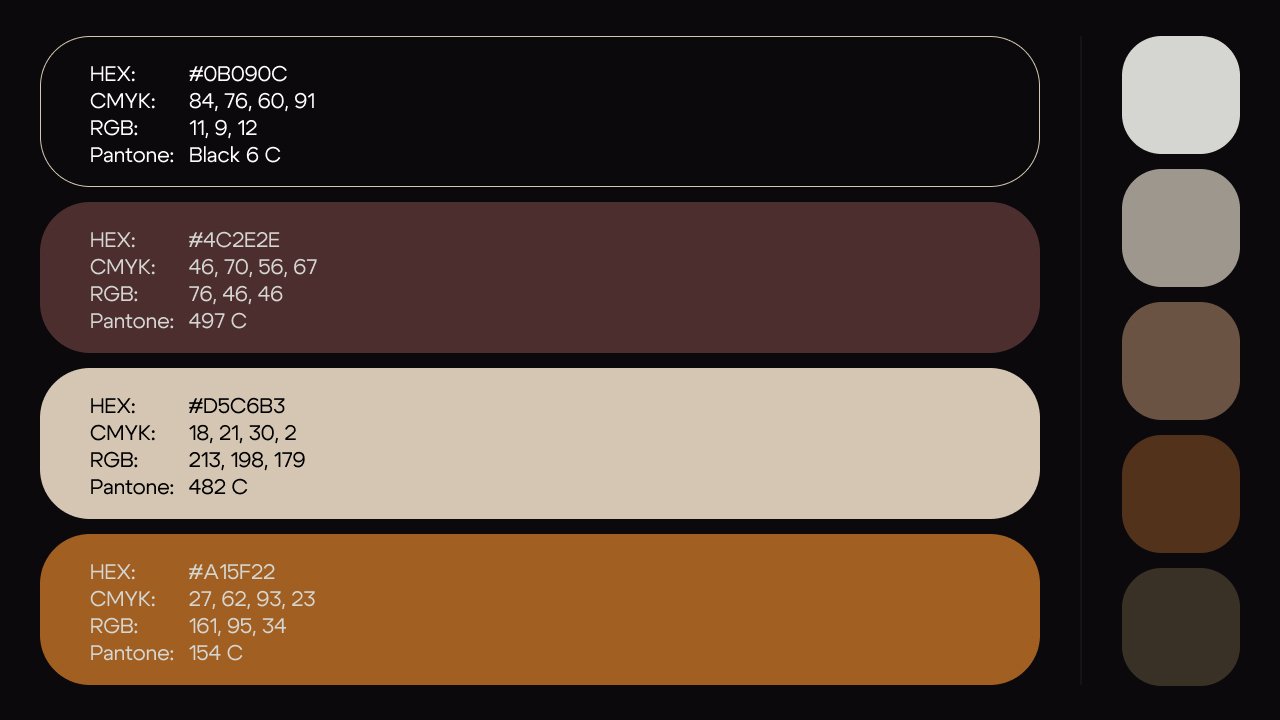 В логотипе мы использовали плавные и округлые линии для создания ощущения мягкости, уюта и тепла, которые ассоциируются с моментами наслаждения от кофе. Теплые «кофейные» оттенки цветовой палитры идеально дополнили эти образы.