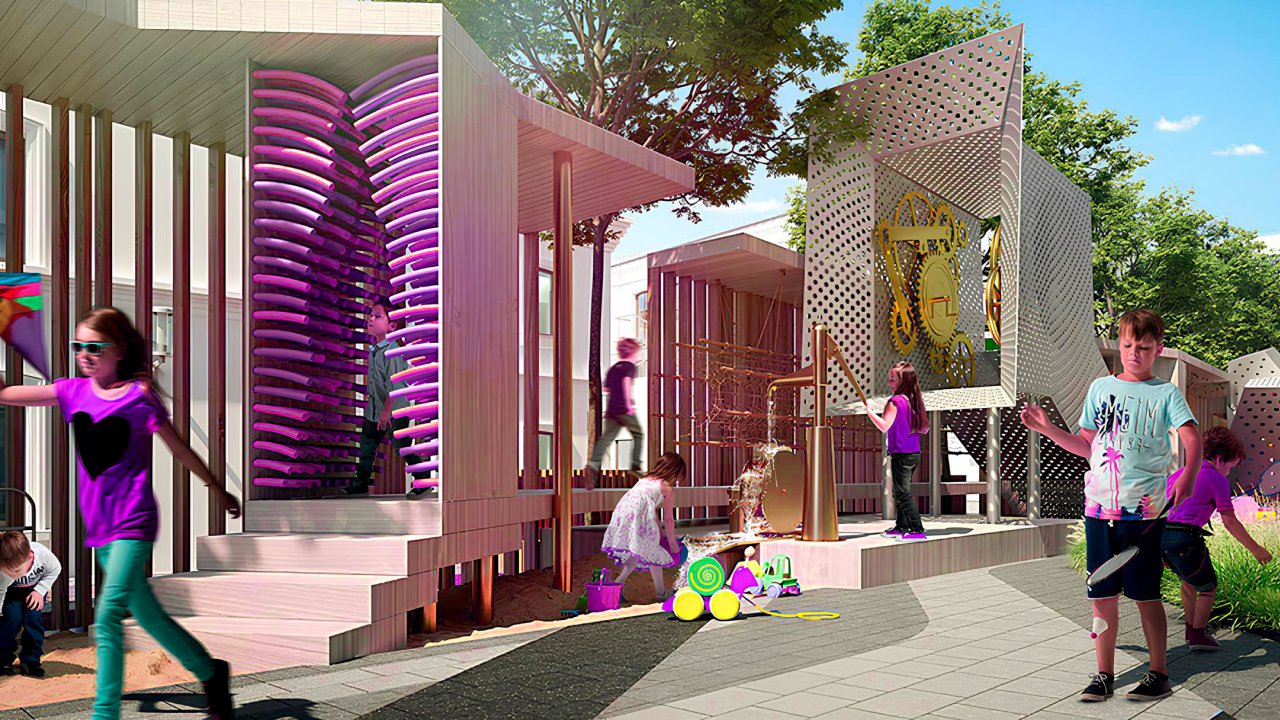 Фиолетовый символизирует мудрость, развитие и воображение, а жёлтый — радость, энергию и солнце, создавая гармоничный баланс между интеллектом и игрой, взрослыми и детьми.