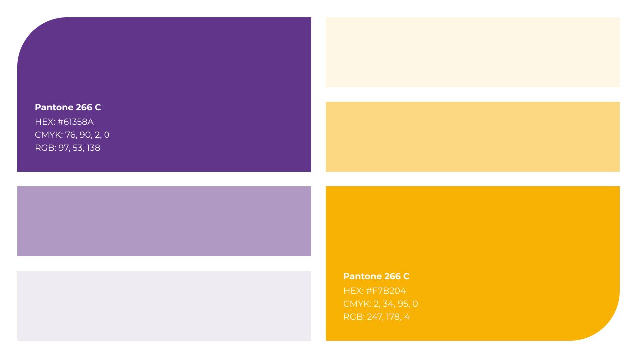 В качестве дополнительных оттенков выбраны мягкие, приглушённые вариации этих цветов: бледно-фиолетовый и бледно-жёлтый. Они используются для фона и декоративных элементов, чтобы фирменный стиль оставался визуально лёгким и не перегруженным.