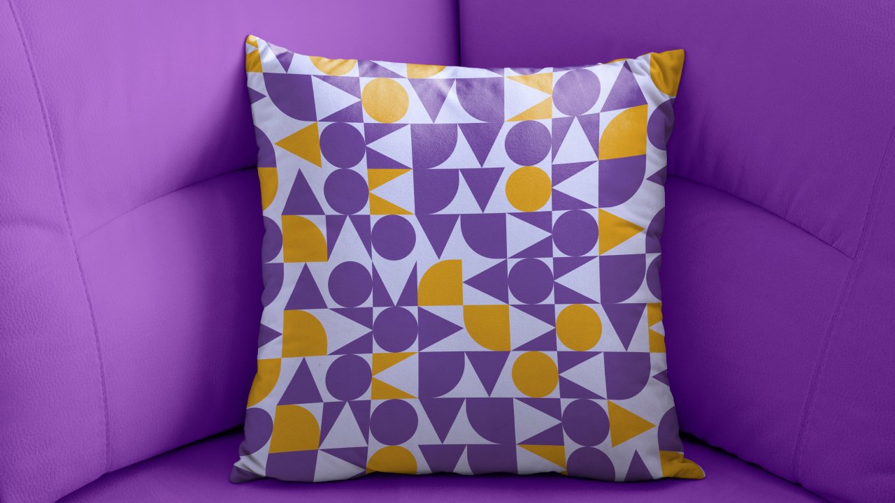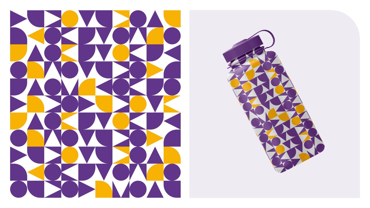 Дополнительно мы разработали фирменный паттерн, состоящий из жёлто-фиолетовых геометрических фигур.