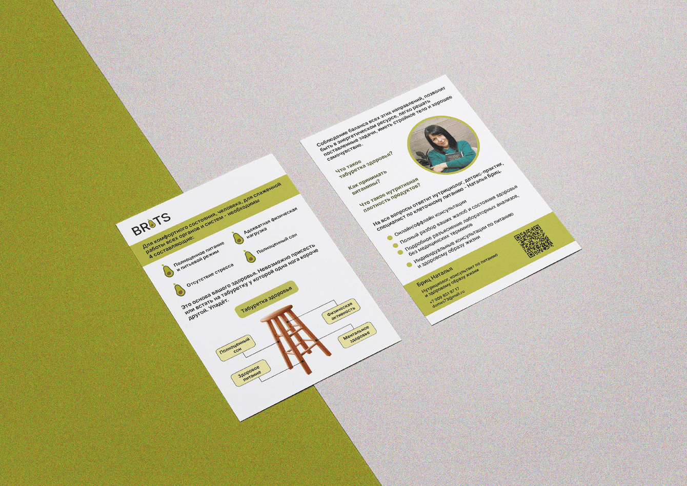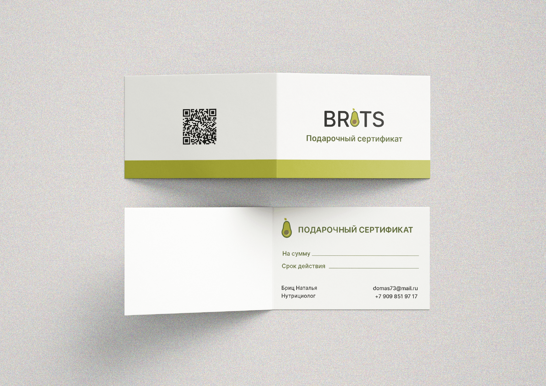 Задача: разработать логотип, дополнительные элементы фирменного стиля и основные носители личного бренда (визитка, листовка, подарочный сертификат), при этом в основных константах необходимо отразить направление деятельности специалиста - нутрициология.