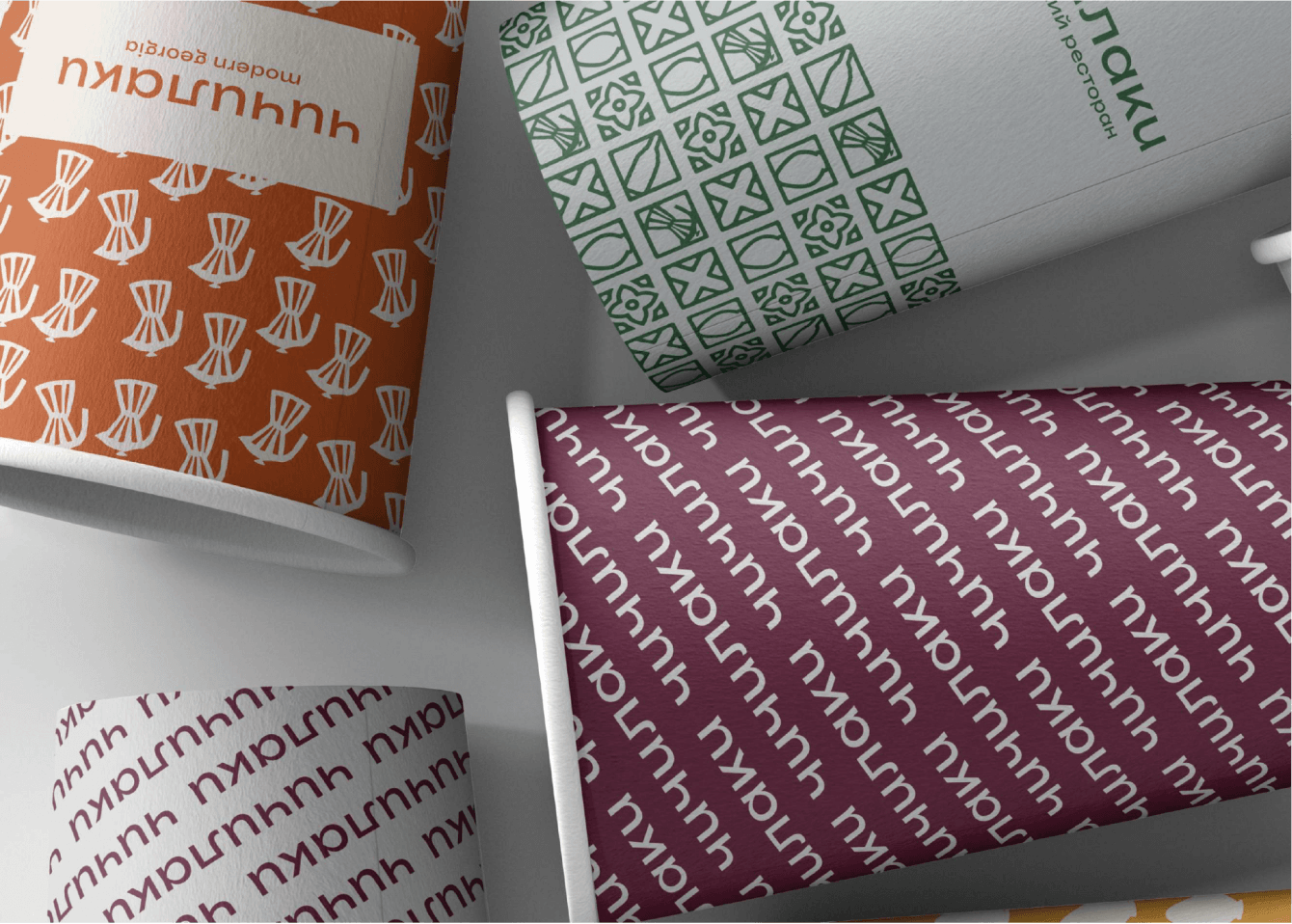 Атмосфера тепла и гостеприимства, характерная для грузинской кухни, считывается через плавные линии и оригинальные формы шрифта. Это не только дань уважения языковому наследию, но и элемент, который создаёт визуальную связь с традициями страны и приглашает гостей в мир грузинского угощения и радушия.