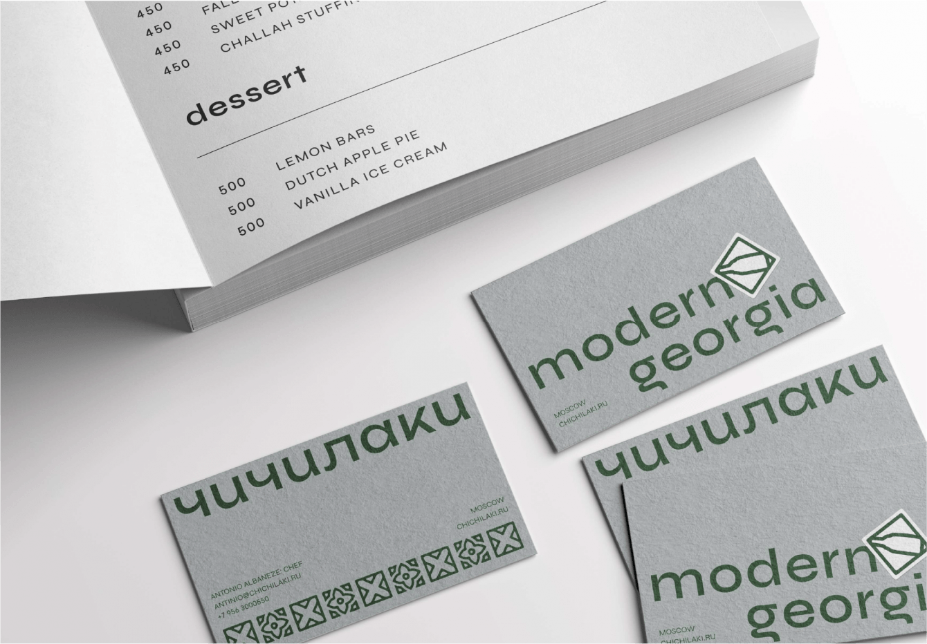Перед нами стояла задача разработать фирменный стиль для двухэтажного ресторана современной грузинской кухни в центре Москвы