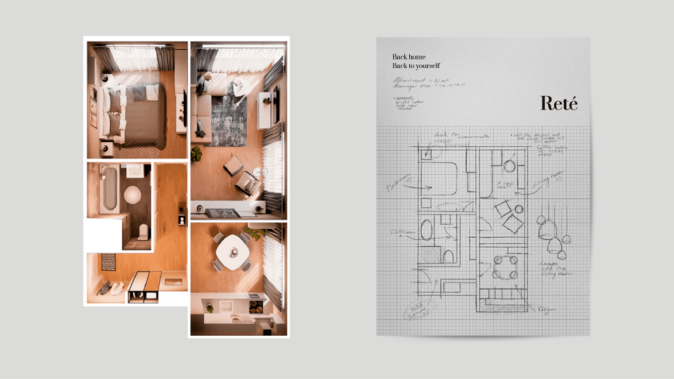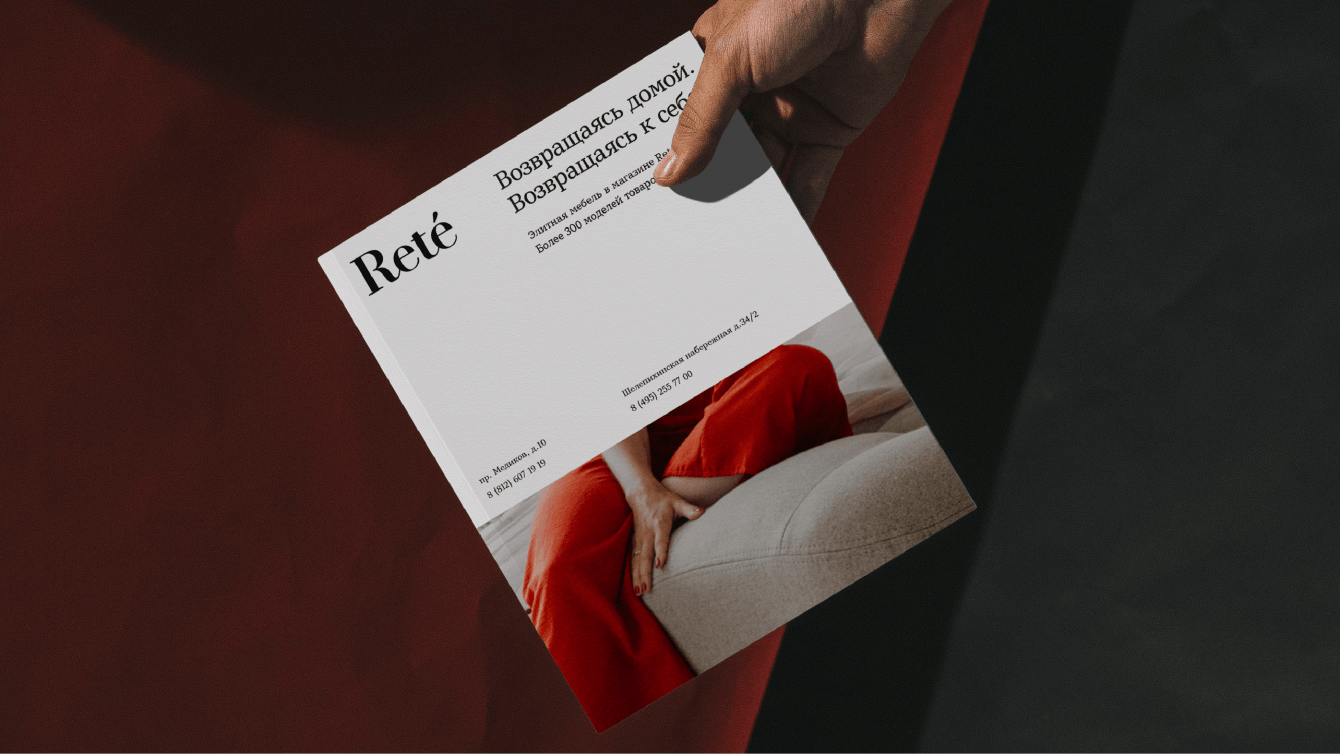 Reté — бренд дизайнерской мебели и предметов интерьера. Креативная команда агентства ENDY разработала фирменный стиль и коммуникации, основанные на концепции о том, что дома ты настоящий, возвращаясь домой, ты возвращаешься к себе, дом — продолжение человека.