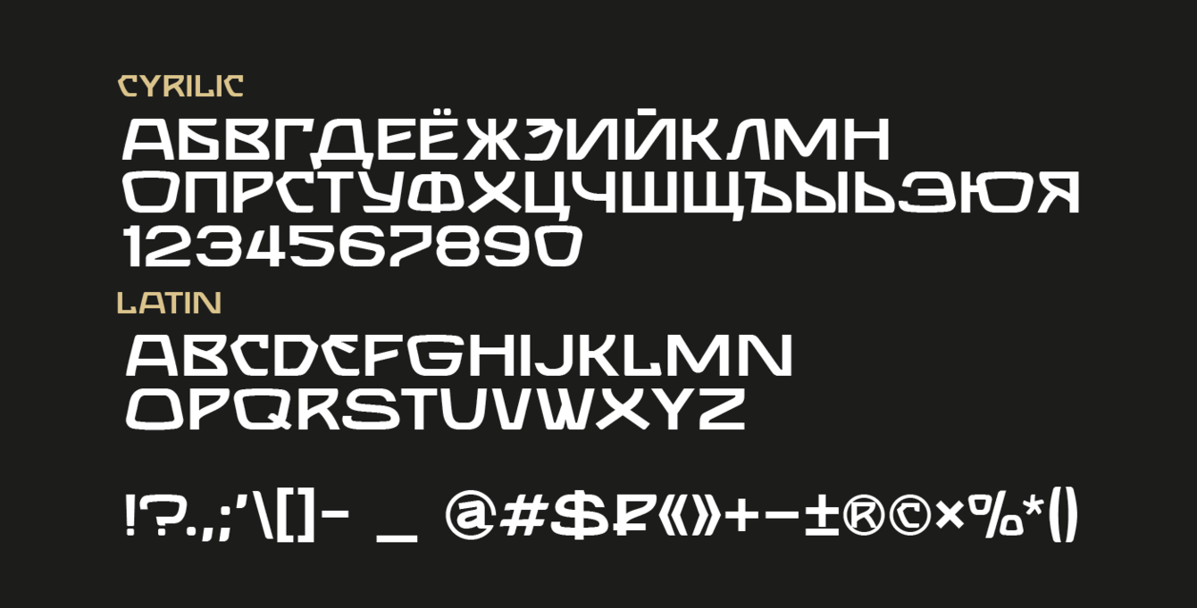 — Графичный, акцидентный характер шрифта, узнаётся на любом языке