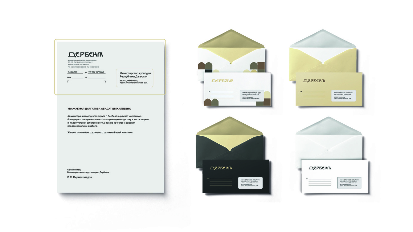 Шрифтовое начертание логотипа родилось из форм улиц старого города, который оставался неизменным на протяжении столетий. Дербент буквально сам дал нам формы и линии, которые стали частью новой айдентики города.