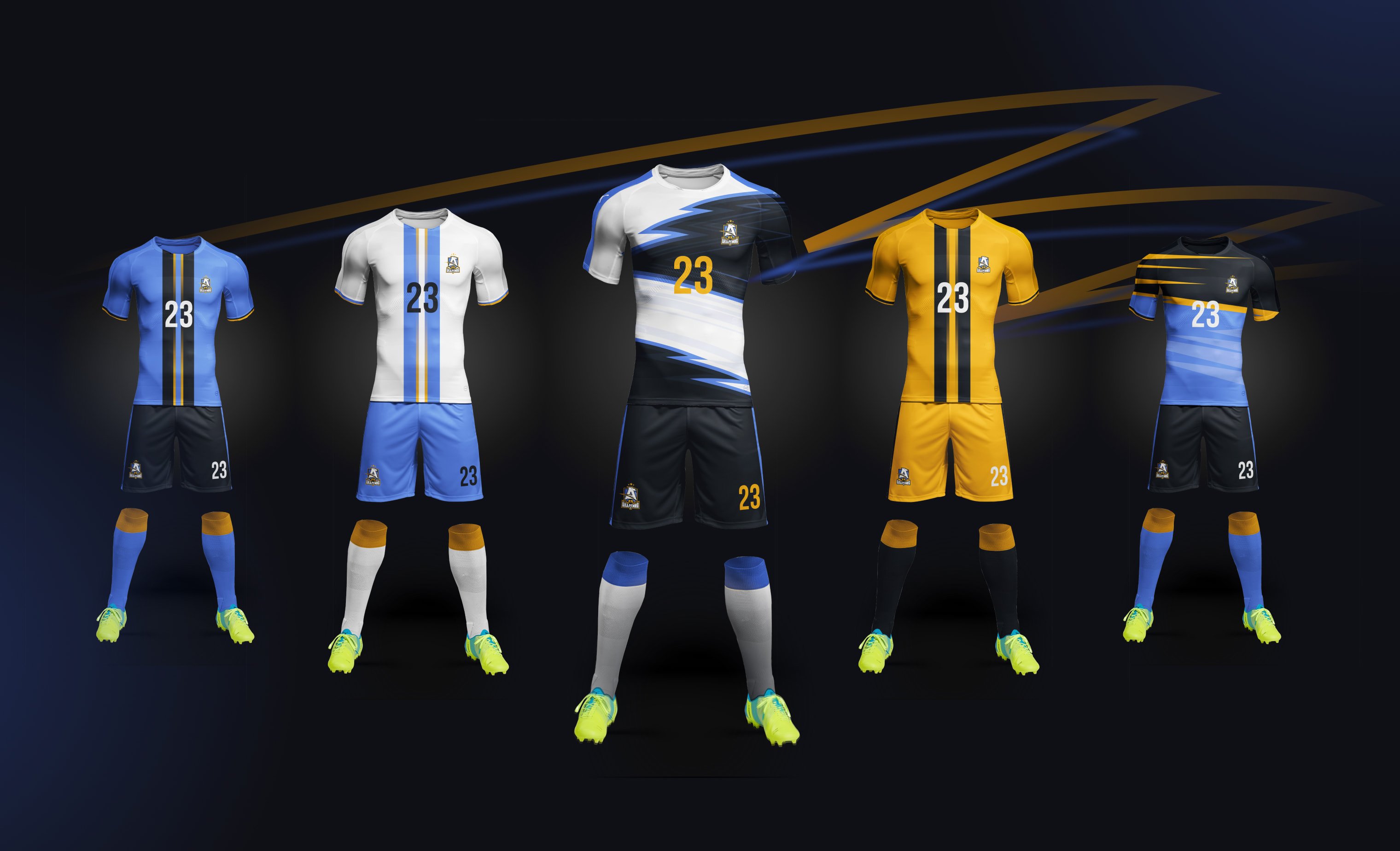 Используя цвета эмблемы школы, мы создали несколько вариантов формы: домашняя, гостевая, запасная, тренировочная. Некоторые из вариантов выполнены в более классическом стиле, чтобы подходить под регламенты футбольных организаций в случае перехода команды школы в крупную футбольную лигу или для участия в турнирах.