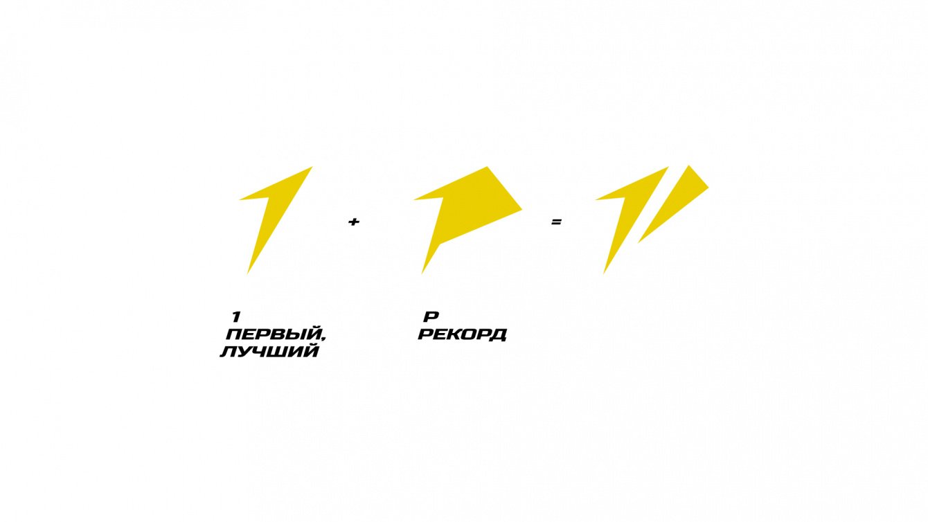 Символы "1" и "Р" служат основными графическими элементами в фирменном стиле. Они интегрированы в другие дизайнерские элементы, такие как фоны, флаеры и визуальные материалы для спортсменов.