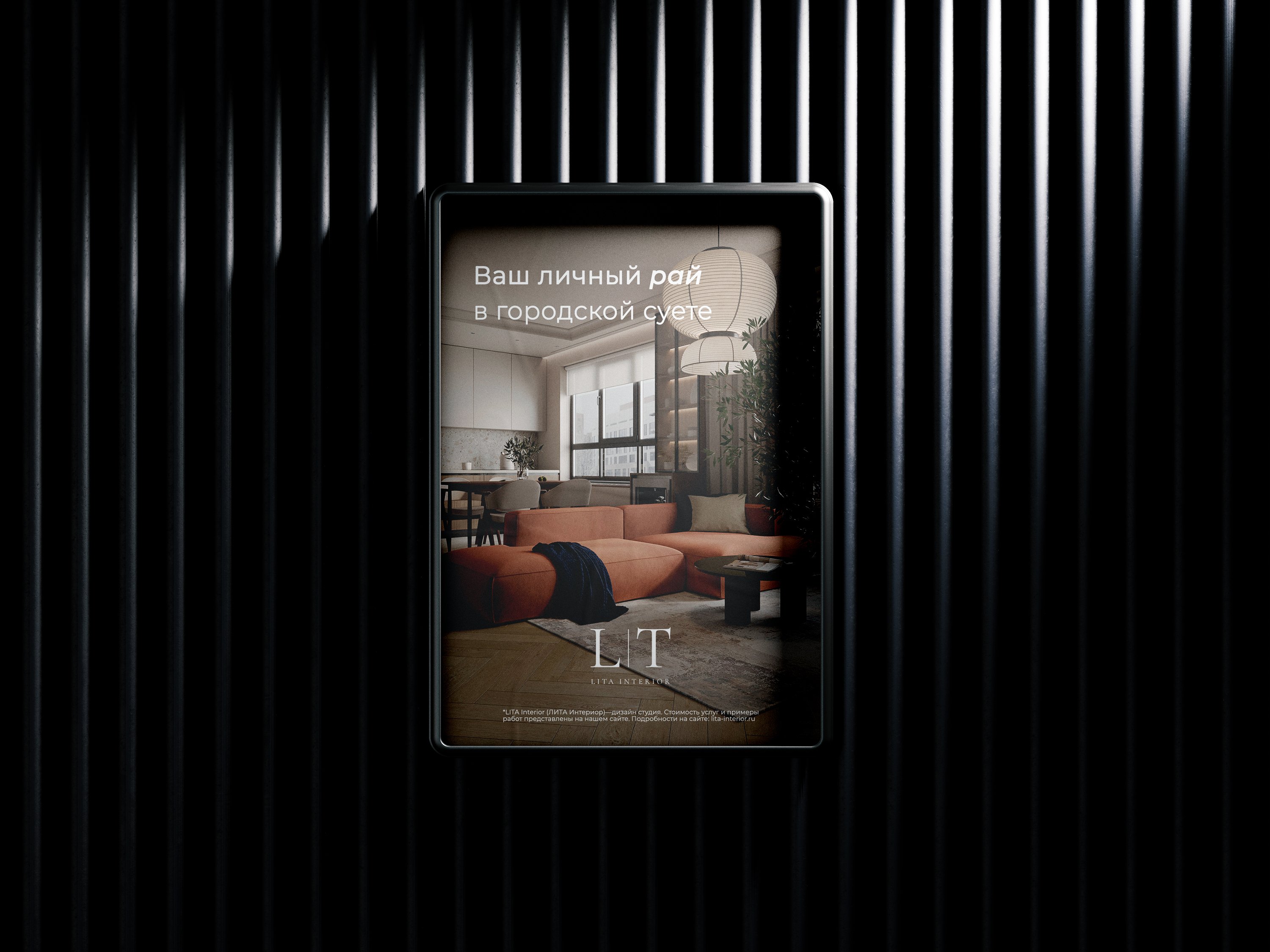 Основа платформы бренда LITA — концепция “личного пространства как отражение души”. Студия акцентирует внимание на индивидуальном подходе к каждому проекту, создавая уникальное пространство, отражающее характер и потребности заказчика. В дизайне важно было передать элегантность и творческий характер студии.