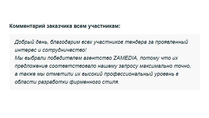 Немного о результатах тендера: участвовали 14 агентств, но заказчик сделал правильный выбор. Всегда приятно получать такие уведомления.