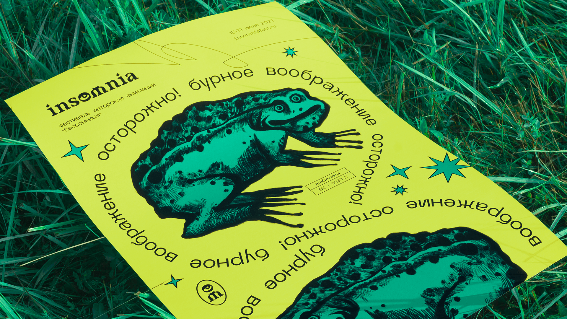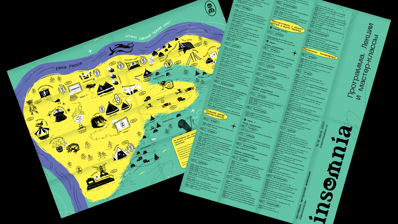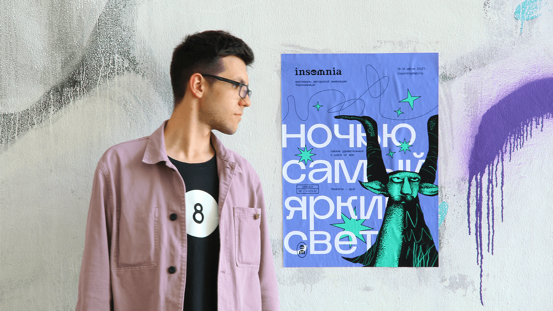 Бессонница — фестиваль под открытым небом, где анимацию показывают ночью, когда темнота становится естественной. Ранее команда фестиваля обходилась собственными силами. Оформление делали про ночь, звезды, персонажей мультиков. Всё, что лежит на поверхности. Мы же хотели создать нечто «из ряда вон». Собственный авторский мир, самобытный и характерный. Отправную точку нашёл дизайнер Ален: