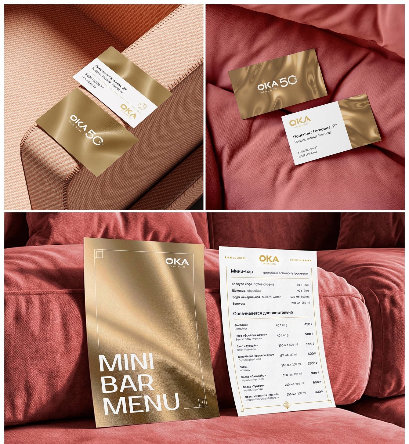 В результате «Гранд Отель Ока» получил глубоко проработанную визуальную систему, которая подчеркивает высокий статус отеля, создавая ощущение комфорта и роскоши в каждой точке касания с гостем.