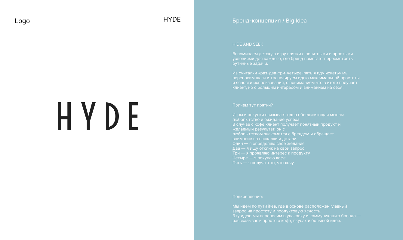 – Создан фирменный стиль с нуля, который отражает философию бренда HYDE.