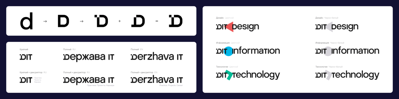 В ходе работы над логотипом решили отказаться от знака и обойтись только шрифтовым написанием. Поработали с формой символов, редактируя штрихи и кернинг. Самый яркий пример – трансформация буквы Д.