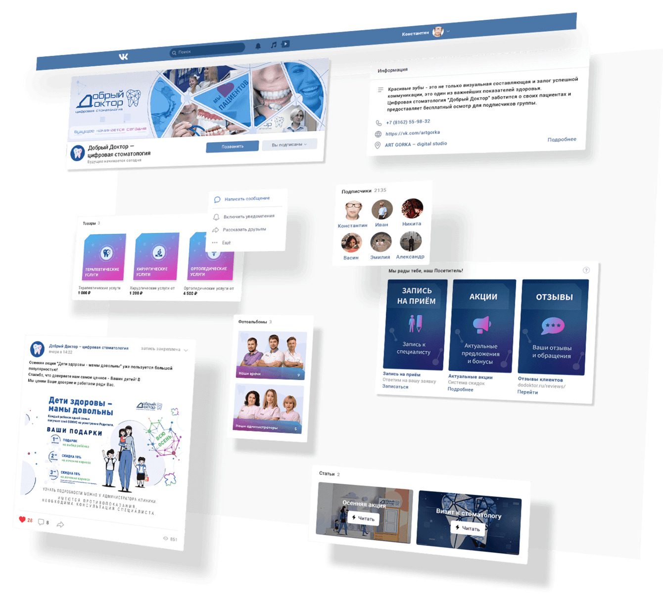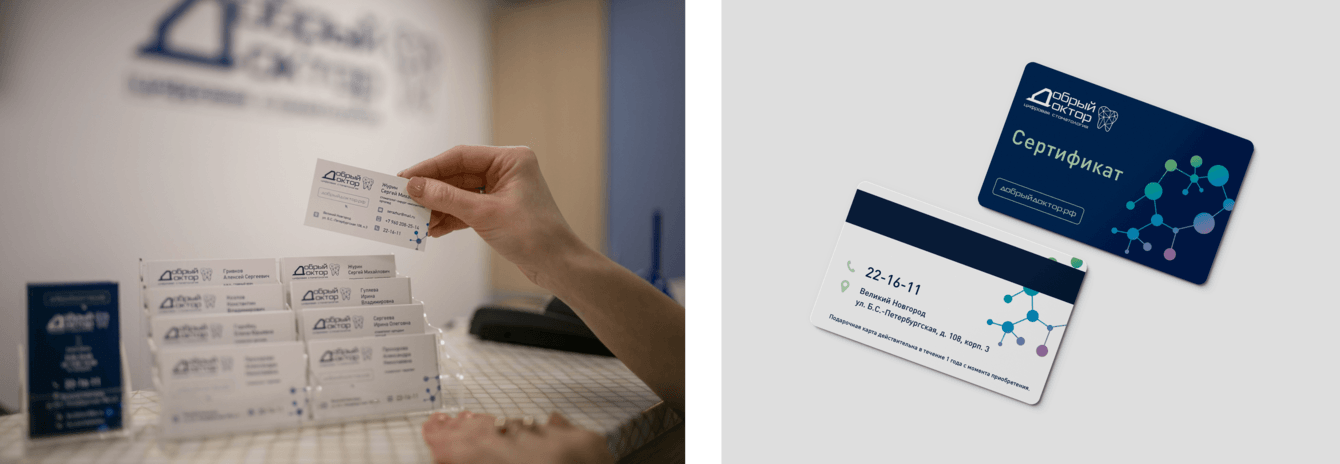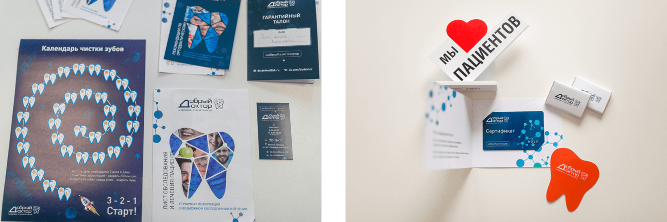 Помимо разработки сайта с выстраиванием системы по привлечению клиентов, мы приняли участие в масштабном ребрендинге стоматологии и помогли «упаковать» клинику абсолютно всем - начиная от памятки пациента и бейджами для сотрудников, заканчивая оформлением соцсетей и современными вывесками снаружи и внутри клиники.