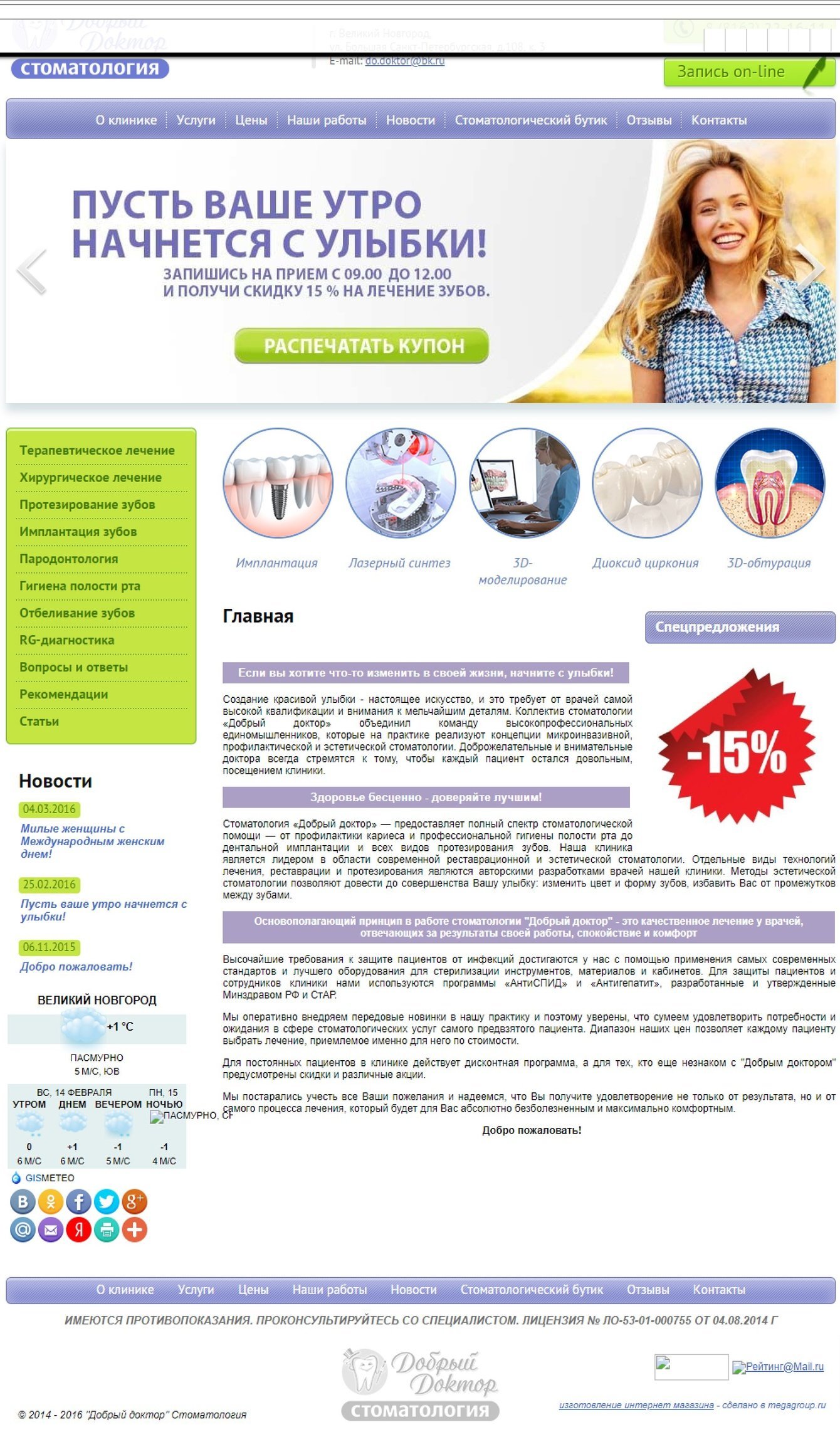 Еще в процессе ребрендинга было оговорено с клиентом, что существующий сайт больше не соответствует новому имиджу и амбициям «Доброго Доктора». Использовать его для продвижения было практически невозможно из-за невнятного стиля и явного несоответствия статусу клиники. Поэтому разработка нового сайта стала не просто желательной, а критически необходимой для поддержания репутации «Доброго Доктора» как лидера в области цифровой стоматологии в своём городе.