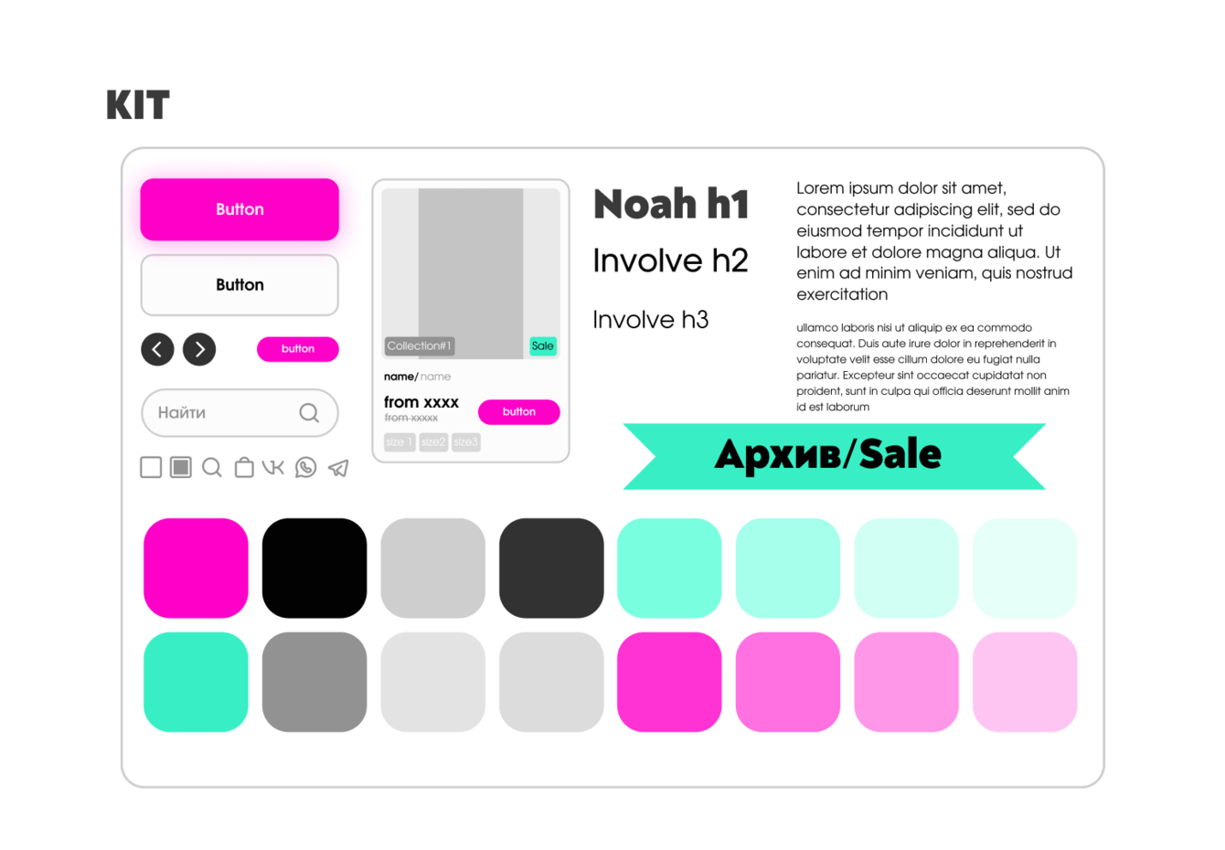 Мы начали с выбора шрифтов и цветовой палитры бренда. Неоновый розовый и аквамариновый мы сбалансировали с помощью черного цвета и универсального современного шрифта. Таким образом оформление сайта выглядит свежо и не перегружено.