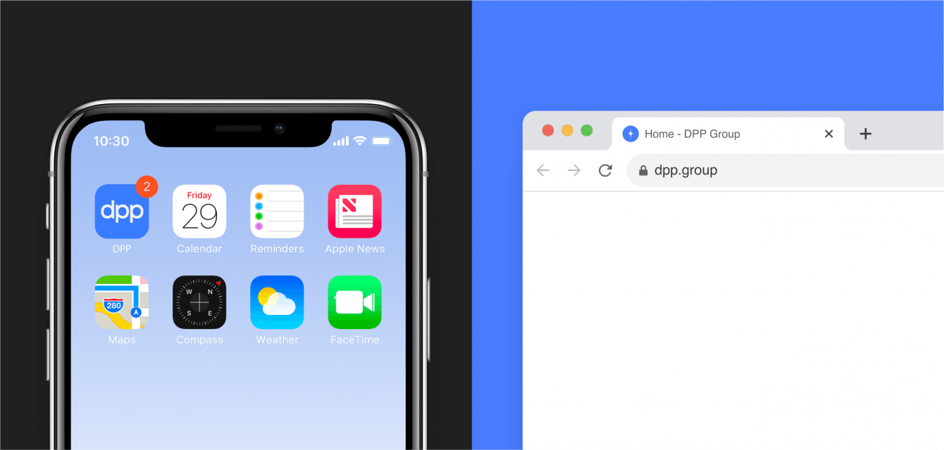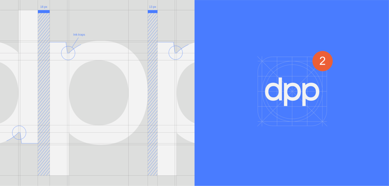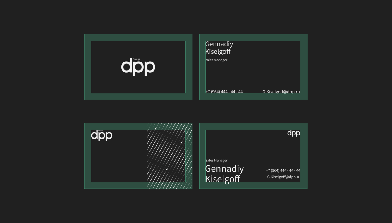 Название DPP состоит из инициалов основателя компании. Мы передали эту ценность при создании минималистичного и наполненного смыслом логотипа. А для простоты его восприятия немного увеличили интервал между буквами «D» и «P», тем самым нивелируя визуальную тяжесть правой части логотипа.