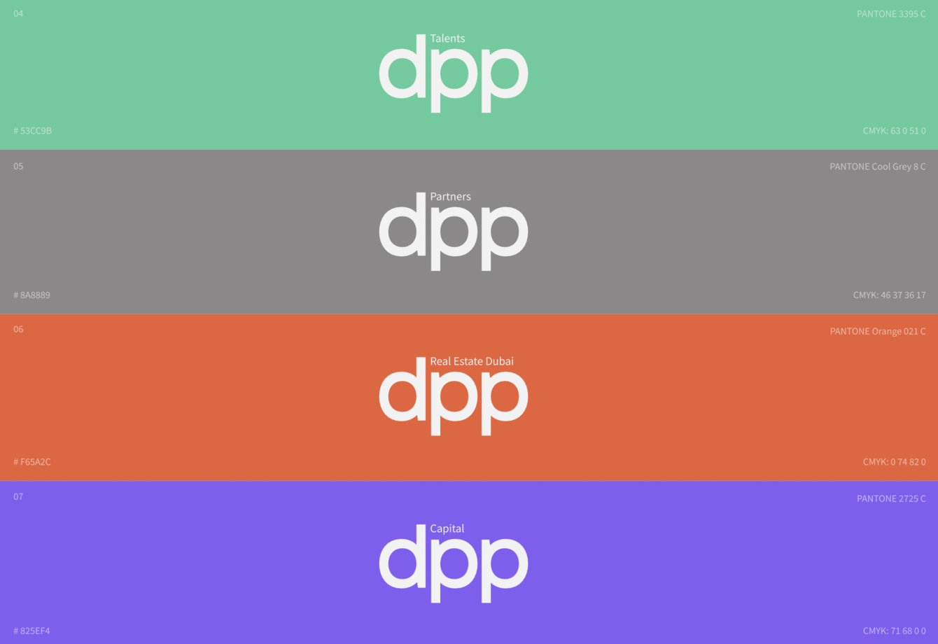 DPP Real Estate Dubai (RED): красный — изысканность, где название цвета отражает первые буквы каждого слова в названии продукта бренда;
