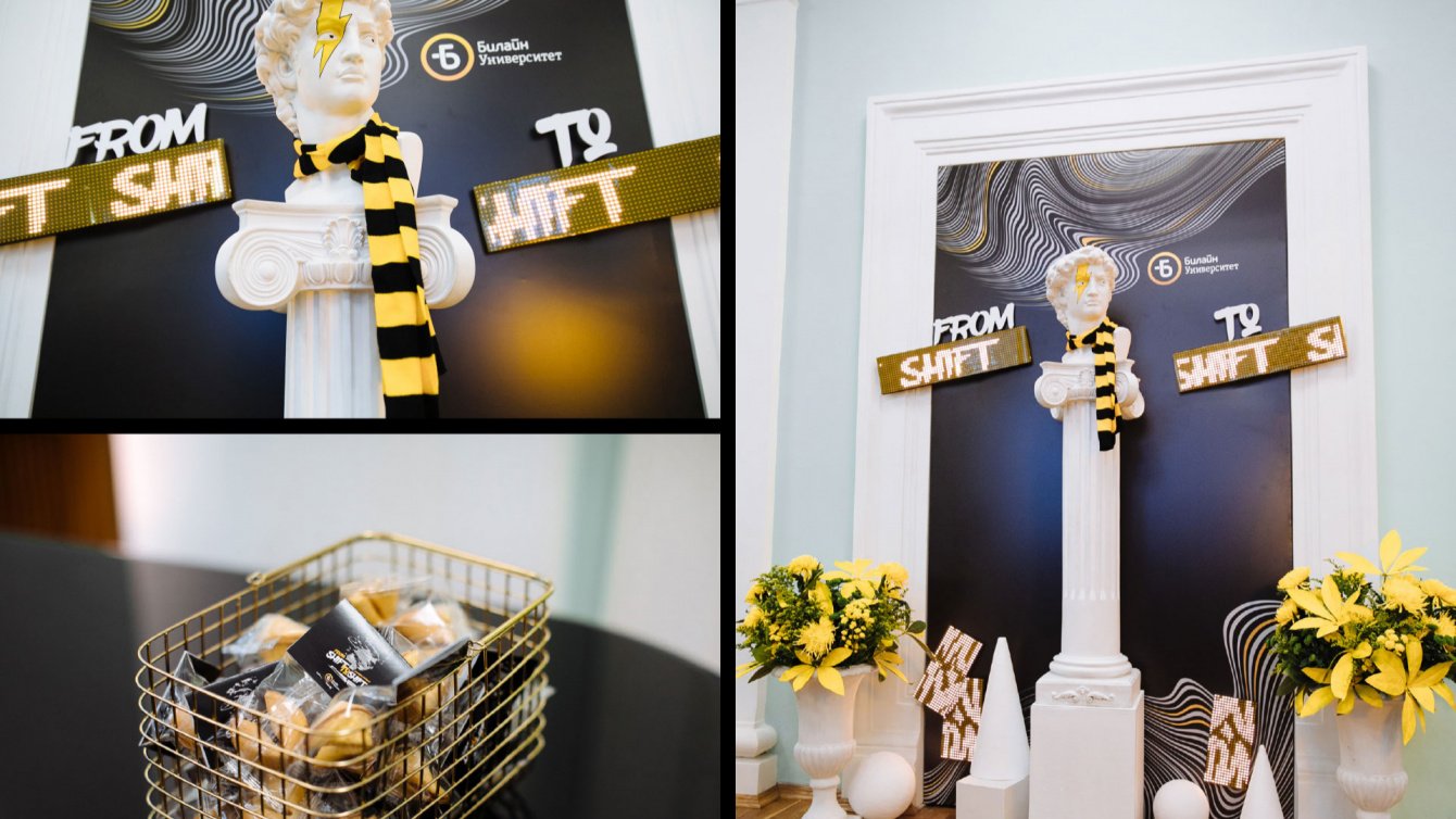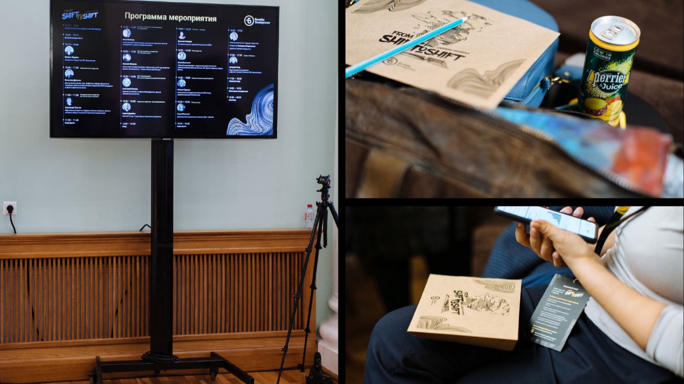 С нашей стороны для конференции From Shift To Shift от Beeline University был проработан ряд элементов от презентаций спикеров до печенек с предсказаниями.