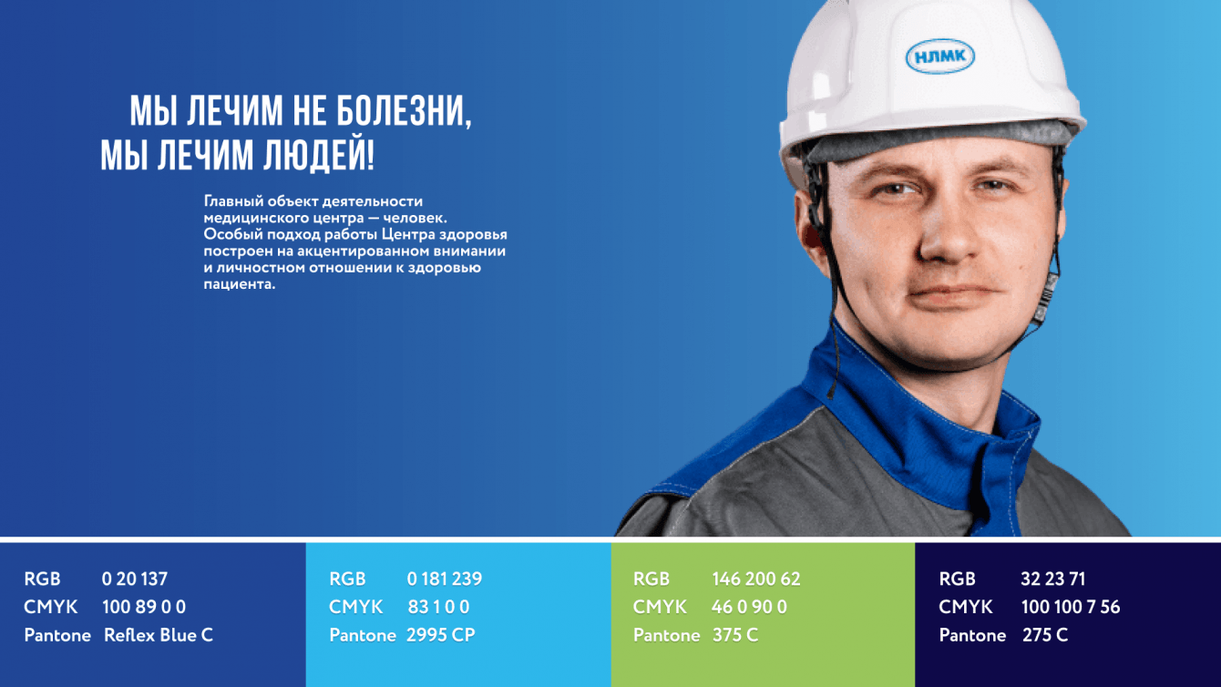 По итогам проекта Центр Здоровья НЛМК приобрёл исчерпывающий набор инструментов для построения единой графической оболочки своего бренда как современной высокотехнологичной медицинской организации областного масштаба, обеспечивающей высочайший уровень комфорта и сервиса для своих посетителей. На основе утвержденных констант фирменного стиля бренда Центра мы сформировали гайд-бук, который описывает сами константы, содержит правила и рекомендации по их использованию, а также примеры оформления носителей фирменного стиля бренда.