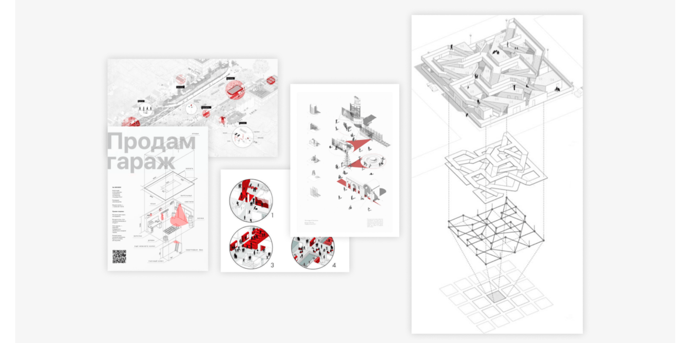 Мы начали с подбора референсов, чтобы правильно уловить ощущение от бюро. В первой итерации ориентируемся на многоуровневые иллюстрации, крупную типографику, линии и сетки. Согласовали общий вижн с заказчиком.