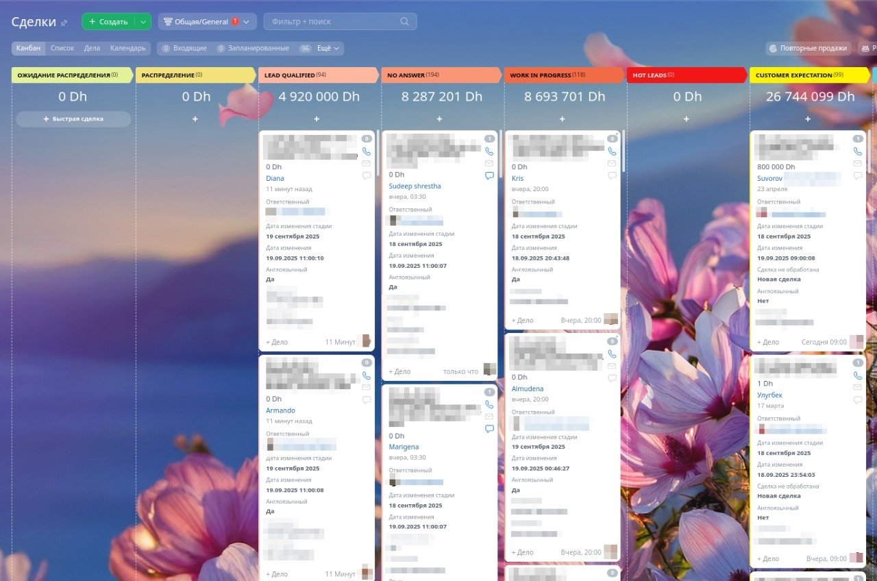 - Сложная система распределения лидов с возможностью самостоятельной настройки клиентом.