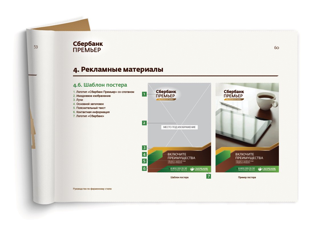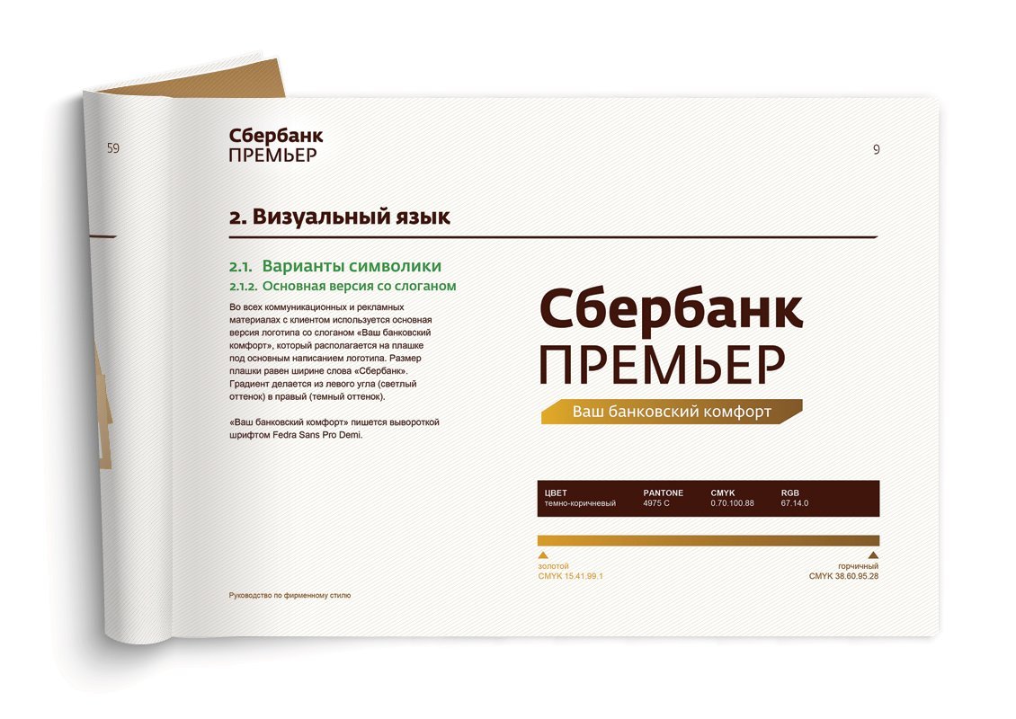 Был создан отдельный логотип Сбербанк Премьер, основанный на стилистике и шрифтах основного бренда, проведено его позиционирование и создан фирменный стиль и брендбук, включающий в себя как печатные материалы, так и дизайн сайта, офисов и представительских материалов. Сделано в составе агентства BBDO.