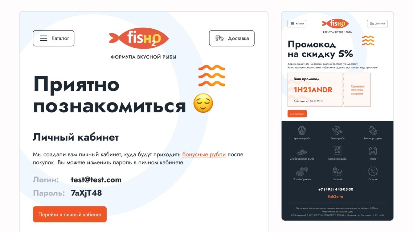 Сделали интеграцию с CRM-системой, чтобы каждому подписчику выдавался индивидуальный промокод и формировалась индивидуальная подборка блюд исходя из того, какую рыбу и в каком виде он заказал на сайте.