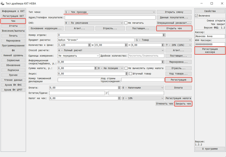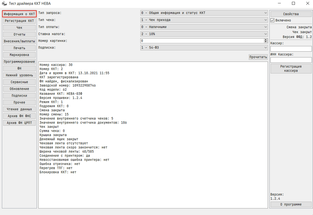 3. Разработано приложение для ОС Windows и Linux, позволяющее настраивать проверять работоспособность ККТ.
