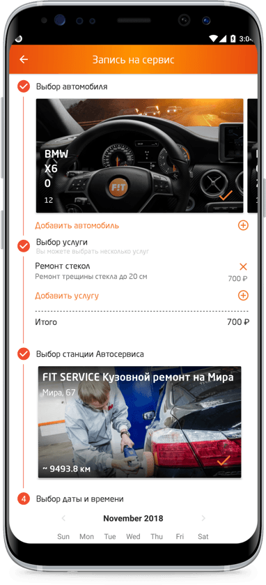 Клиент: федеральная сеть станций технического обслуживания ФитСервис. Задача - запуск мобильного приложения для iOS и Android с целью увеличения удобства записи на сервис, снятия нагрузки с контакт-центра компании.