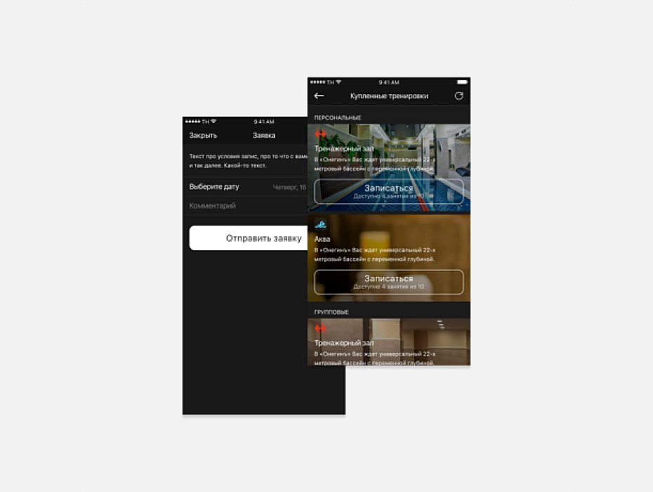 В приложении имеется все, чтобы клиент клуба мог самостоятельно произвести необходимые действия, без участия менеджера.