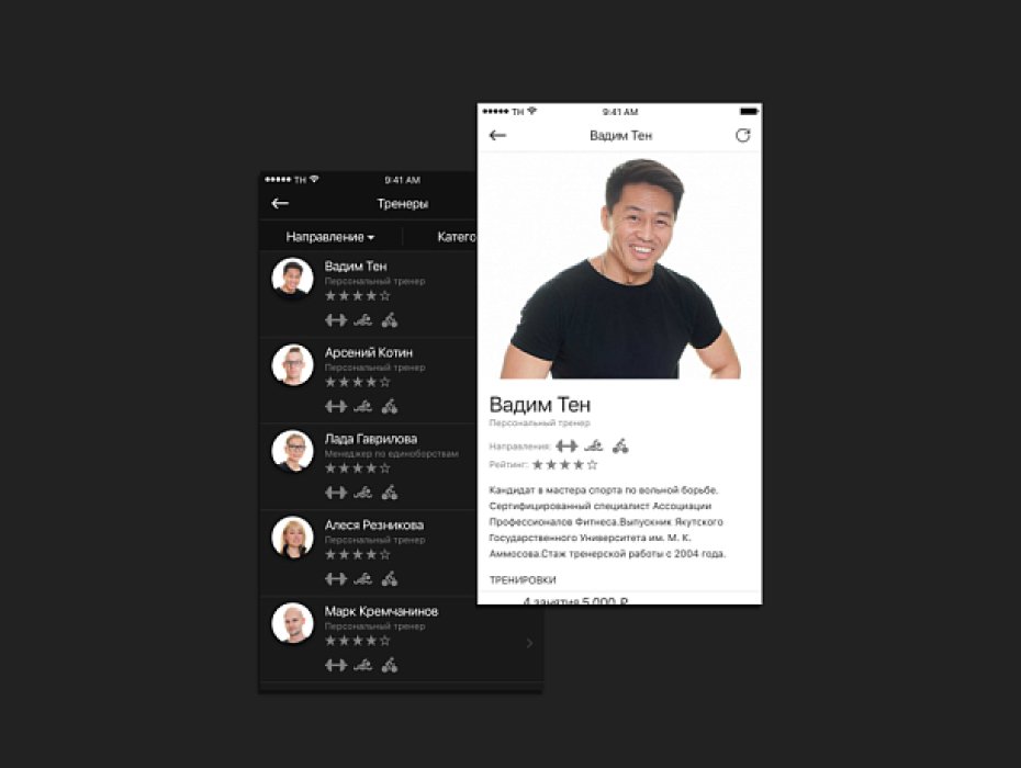 Мы разработали систему рейтингов тренеров. У каждого тренера есть рейтинг и его квалификация, чем опытнее тренер, тем плодотворнее будут проходить занятия.